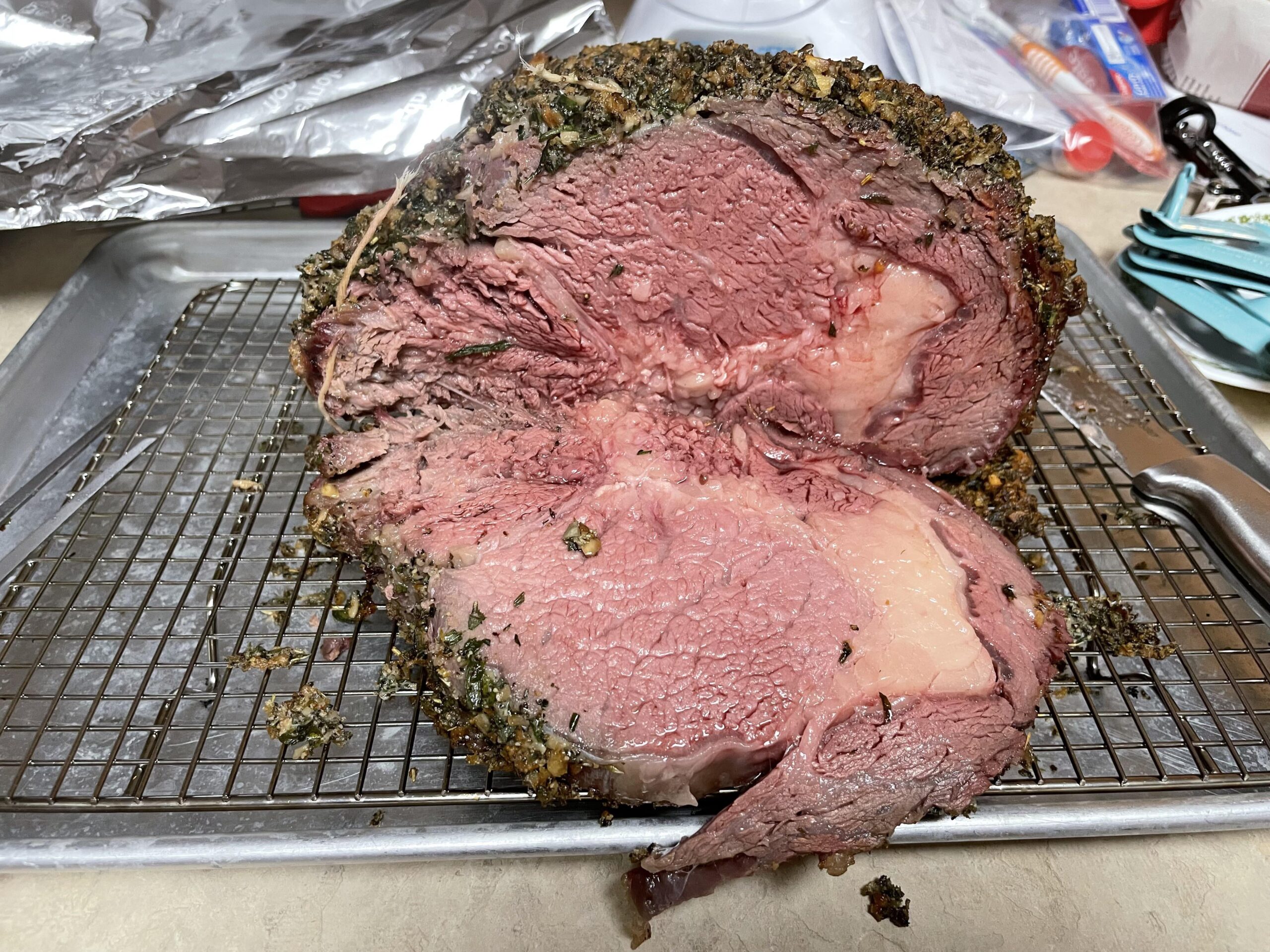 I slice some off while cold and throw it on the pan. Prime rib stays sooo tender even if no longer pink.