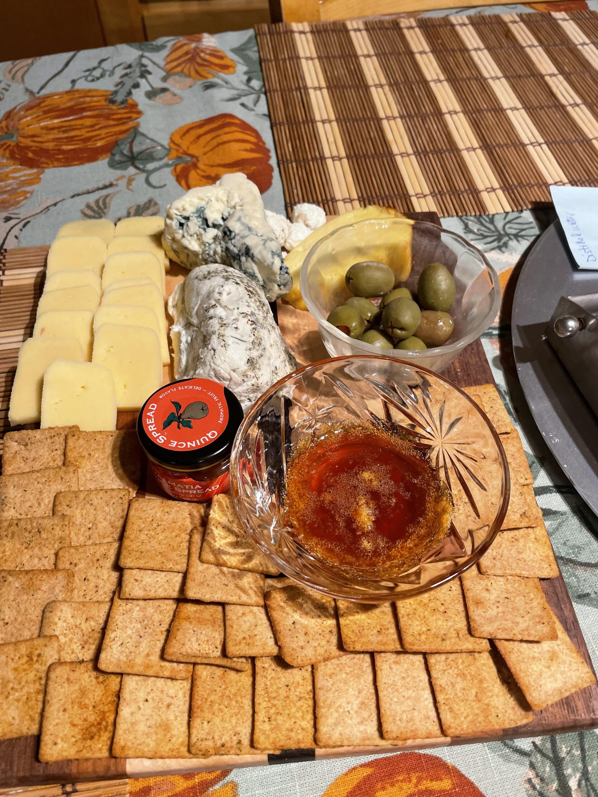 I knew my parents were coming back from visiting my brother in Texas so I used my key to get into their house to make them dinner for when they arrived. This is just the charcuterie board for an appetizer. Main course was shrimp stir fry with egg noodles! 🙂