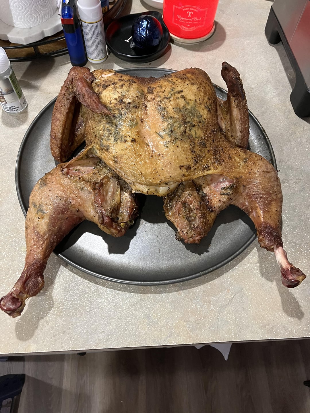 Made my first Spatchcocked and Smoked Turkey today. Brined for 15 hours overnight.