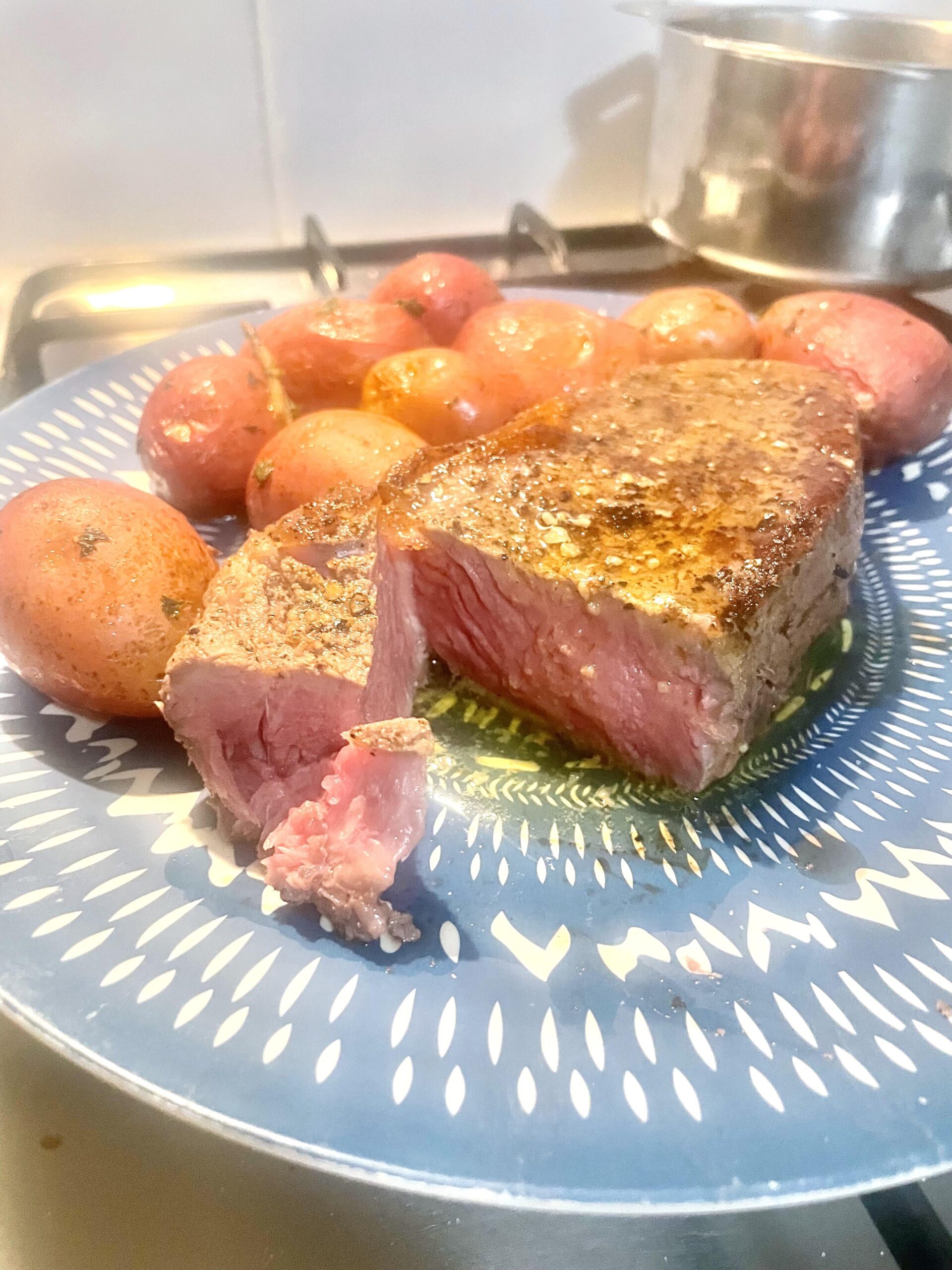 Got a night away from the missus… $15 Coles NY strip, 1.5hrs in sous vide at 56 deg then seared on all sides on the BBQ for a minute or two. What a perfect steak! I love that SV cooking is a cheat code to ridiculously good steaks, even though I only bust it out a couple of times per year. This Xmas I'm going to blow some minds haha