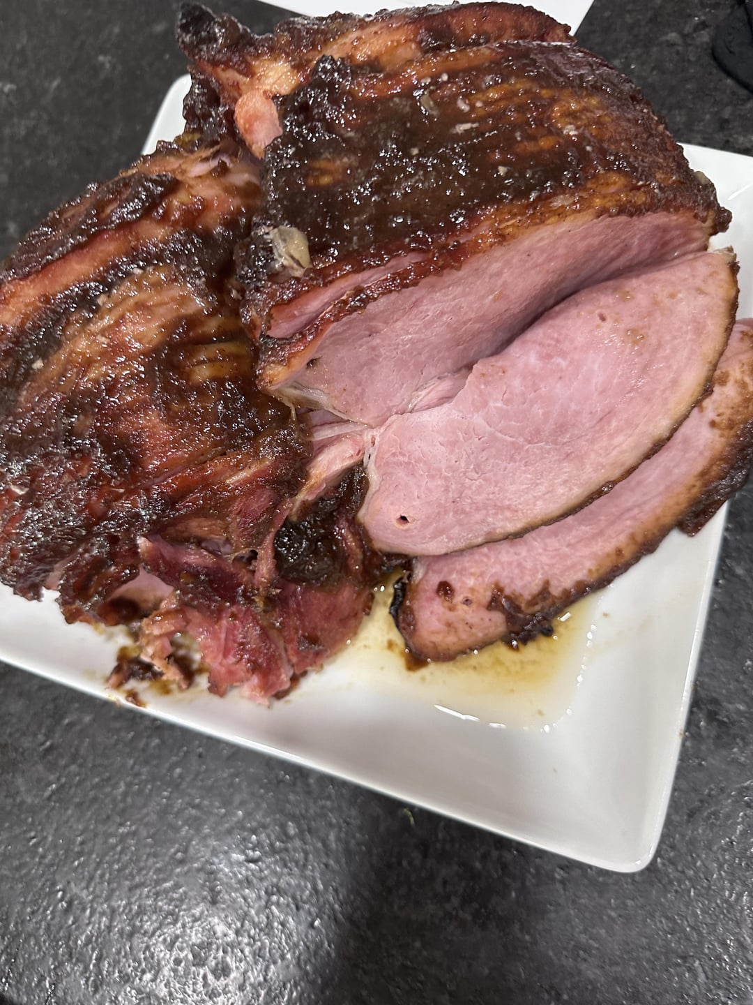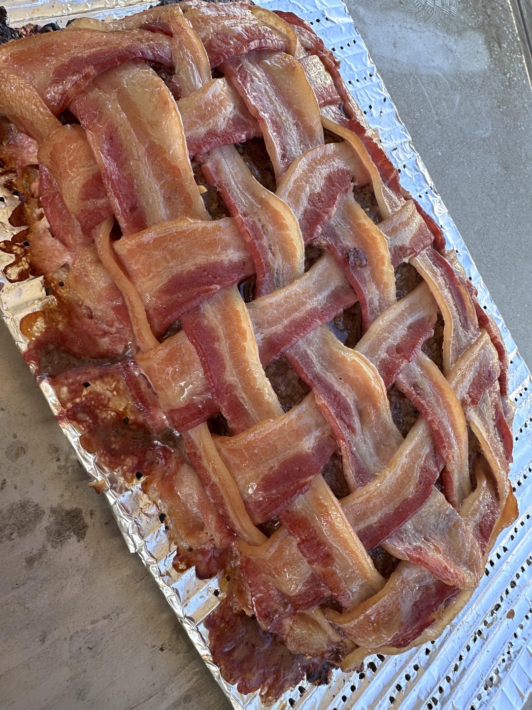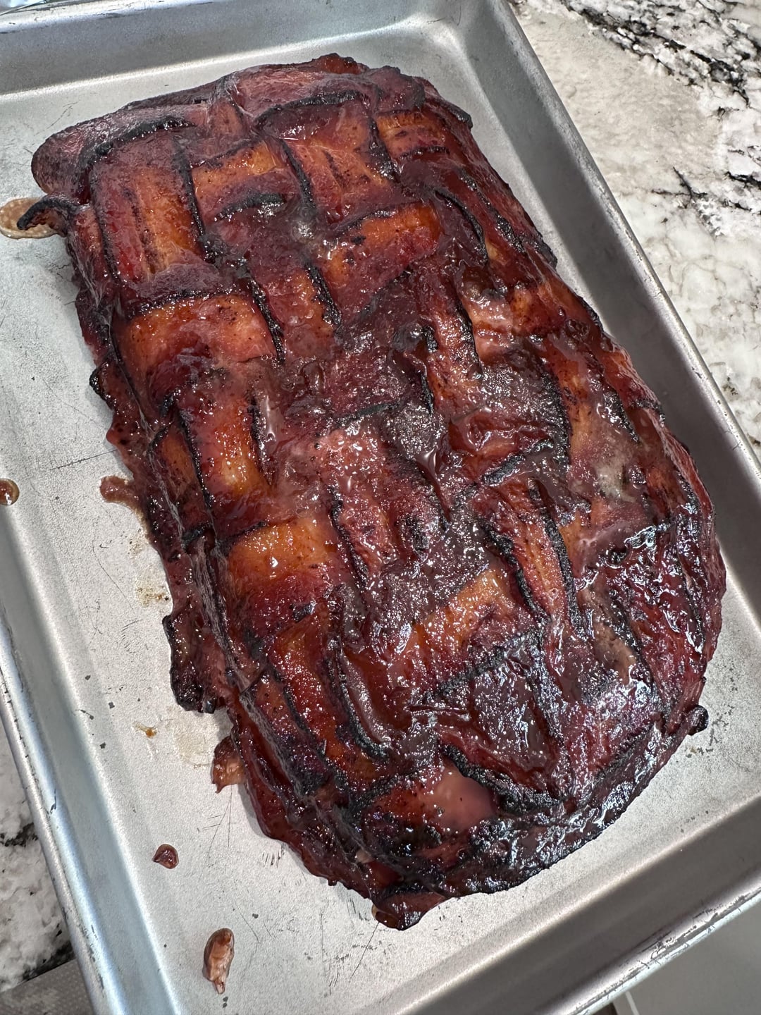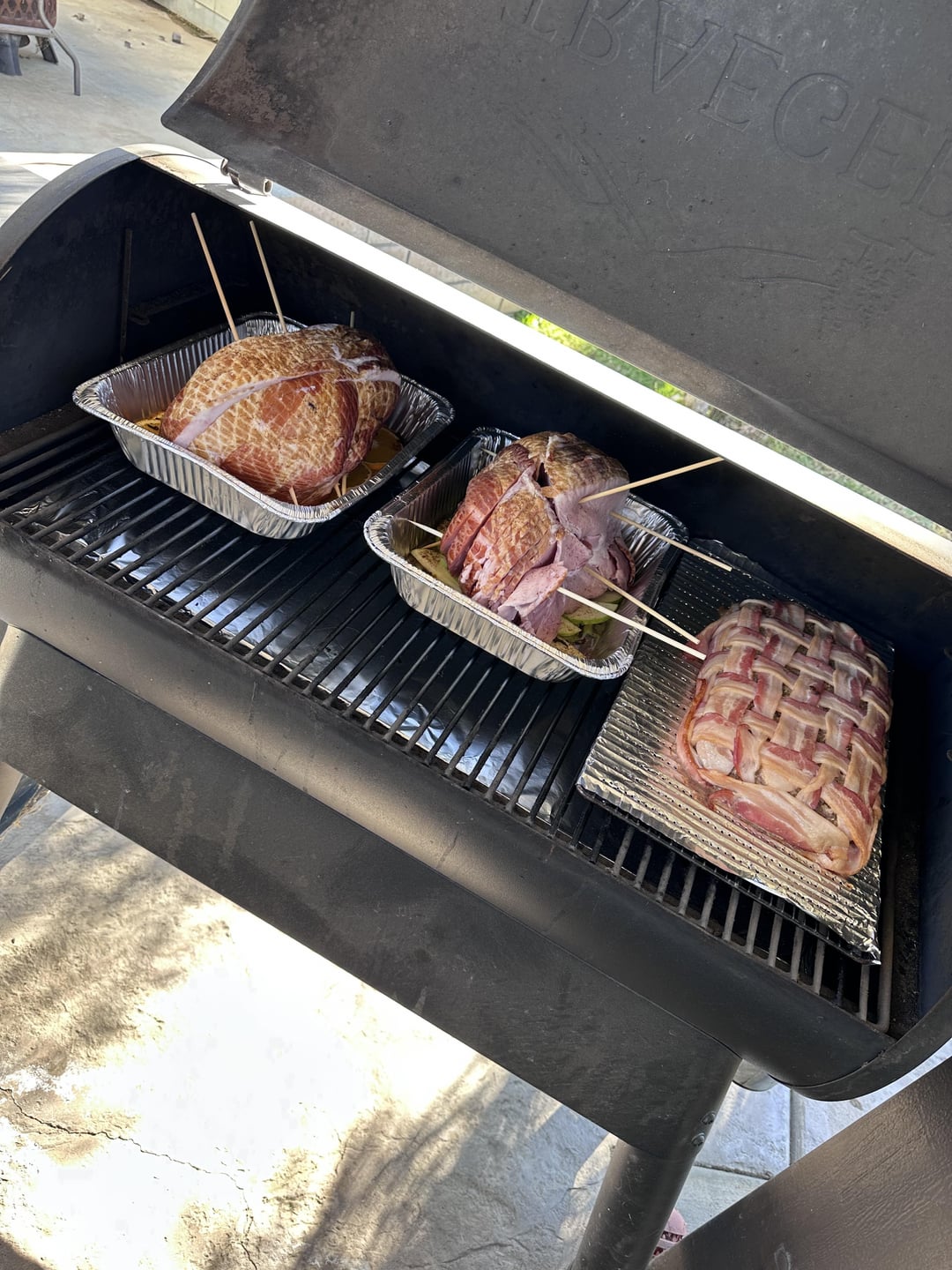 Bacon wrapped meatloaf, “double” smoked ham. One with orange marmalade glaze, the other with apple butter glaze. What did you guys do?