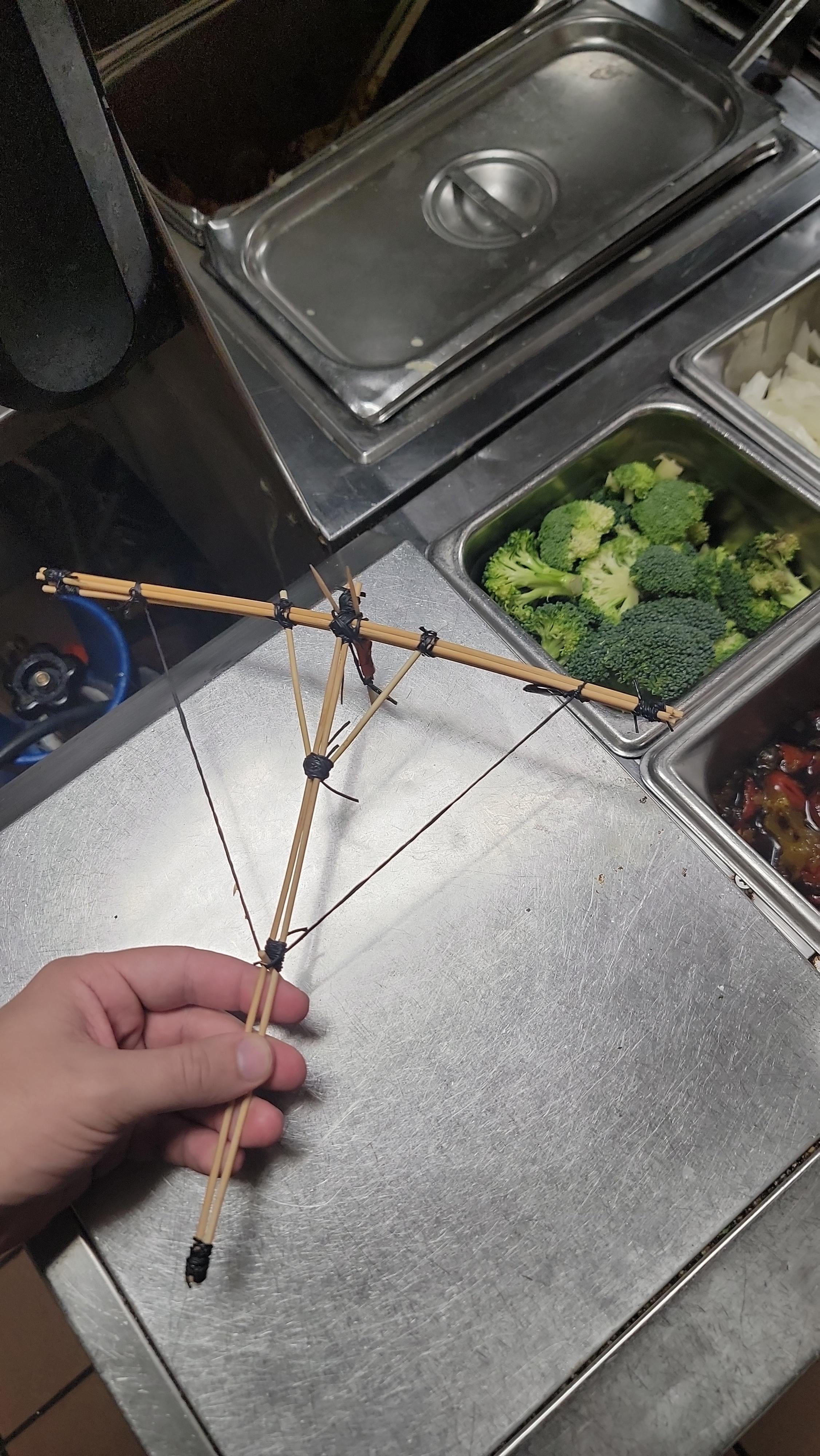 Did you just make a crossbow out of skewers and twine?