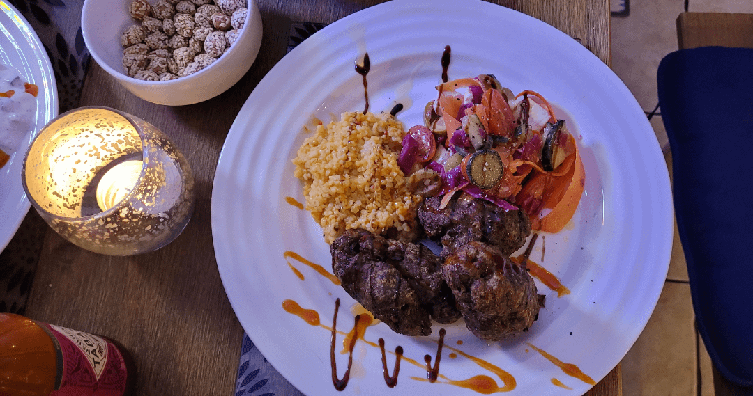 Kofta kebab , harissa bulgar wheat, pickled veg salad. Tuxedo clad staff made the evening one to remember 🖤😘Lots of Ouzo ✌🏼by brucieballoypap666 Write A CommentYou must be logged in to post a comment.