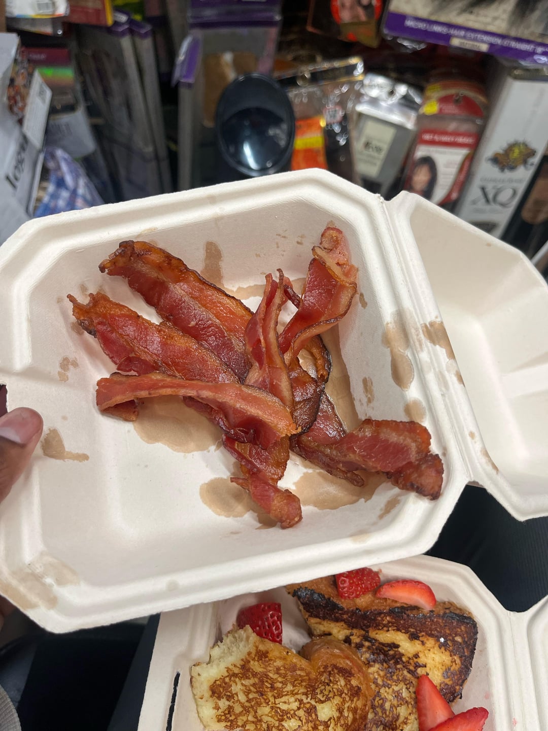 Hi! How many calories are in Ted’s Bulletin French toast (2 half slices) topped with fresh strawberries? No syrup or butter added. And a side of bacon (4 strips)? Couldn’t find the macros online.by DowntownSuit1513 Write A CommentYou must be logged in to post a comment.