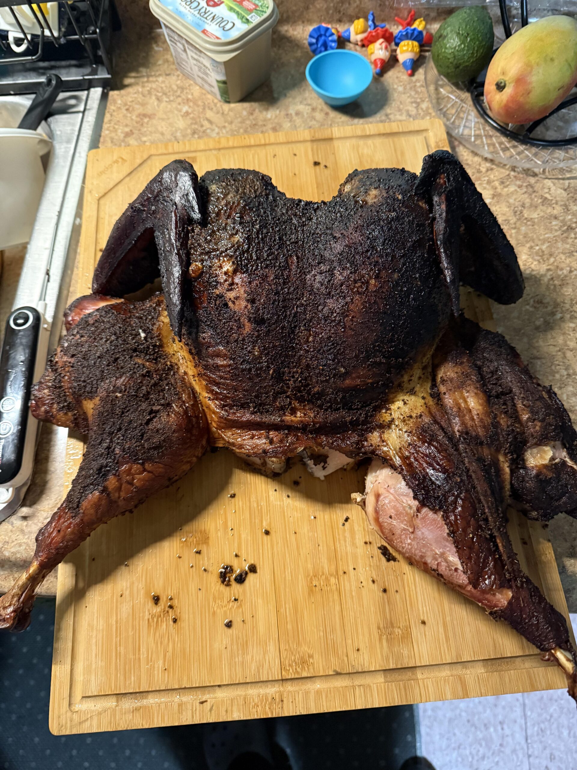 I just made a breast yesterday. I should have spatchcocked it to speed up the cooking time but it turned out great. I used mesquite chips and charcoal with indirect heat over a pan of water using an inkbird to keep track of the temperature.
