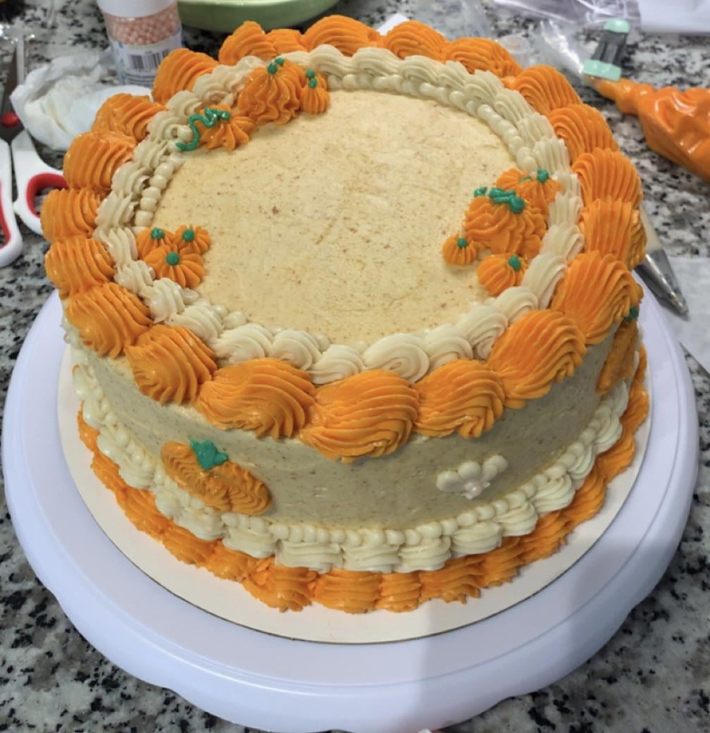 That looks great! Your piping is really clean and well done. I just started learning to pipe myself. I have the same cake swivel too and it works great. Nicely done!