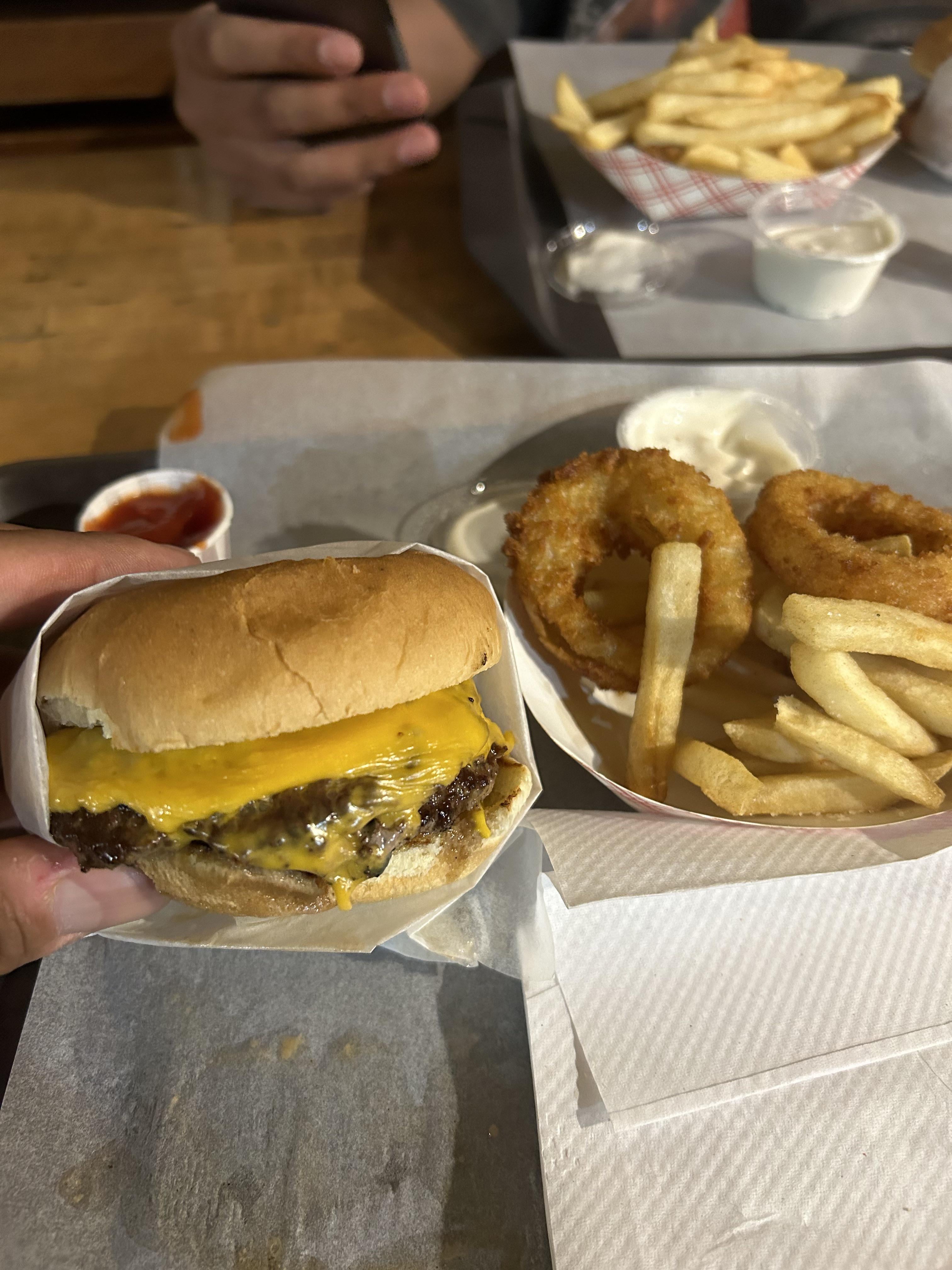 They do their burgers McDonald’s style, needless to say it was delicious.by veryrare13 2 Comments jsmeeker 10 months ago Onion rings and fries. Very nice. DIJames6 10 months ago Damn that looks good..Write A CommentYou must be logged in to post a comment.