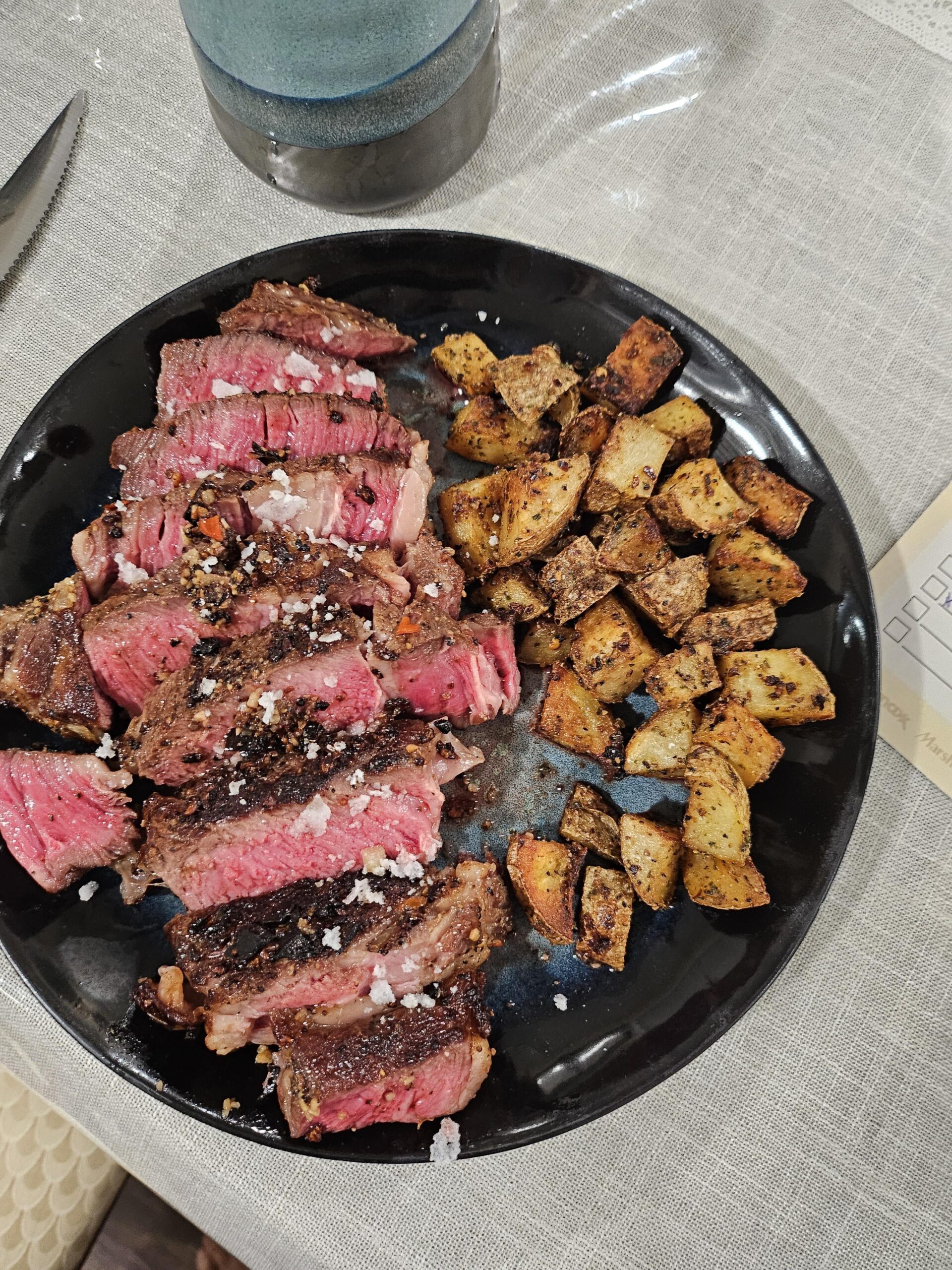 Looks perfect and I like the flaky salt on top. Even the taters look perfect.