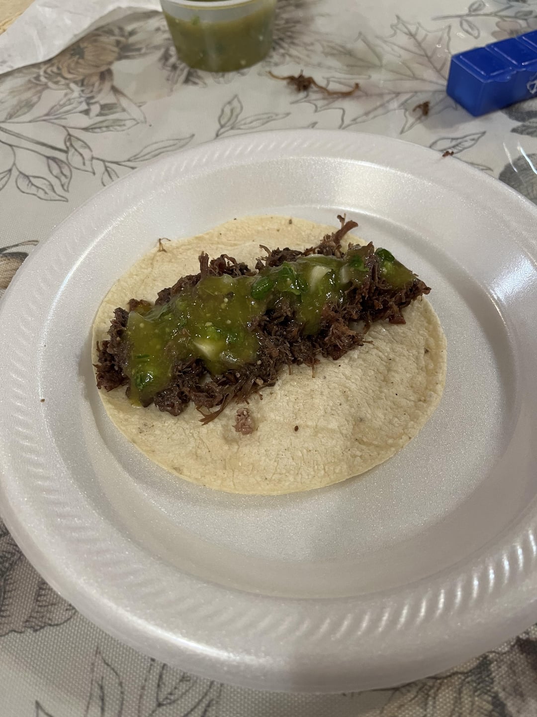 heir03 1 year ago That looks similar to Torchy’s Democrat taco on corn. It’s 240ish calories and it has an avocado on it. So this is probably less than that since there’s no avocado slice on it.