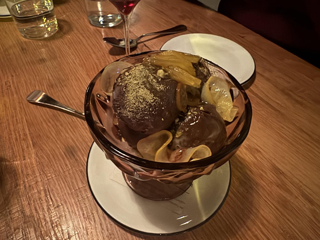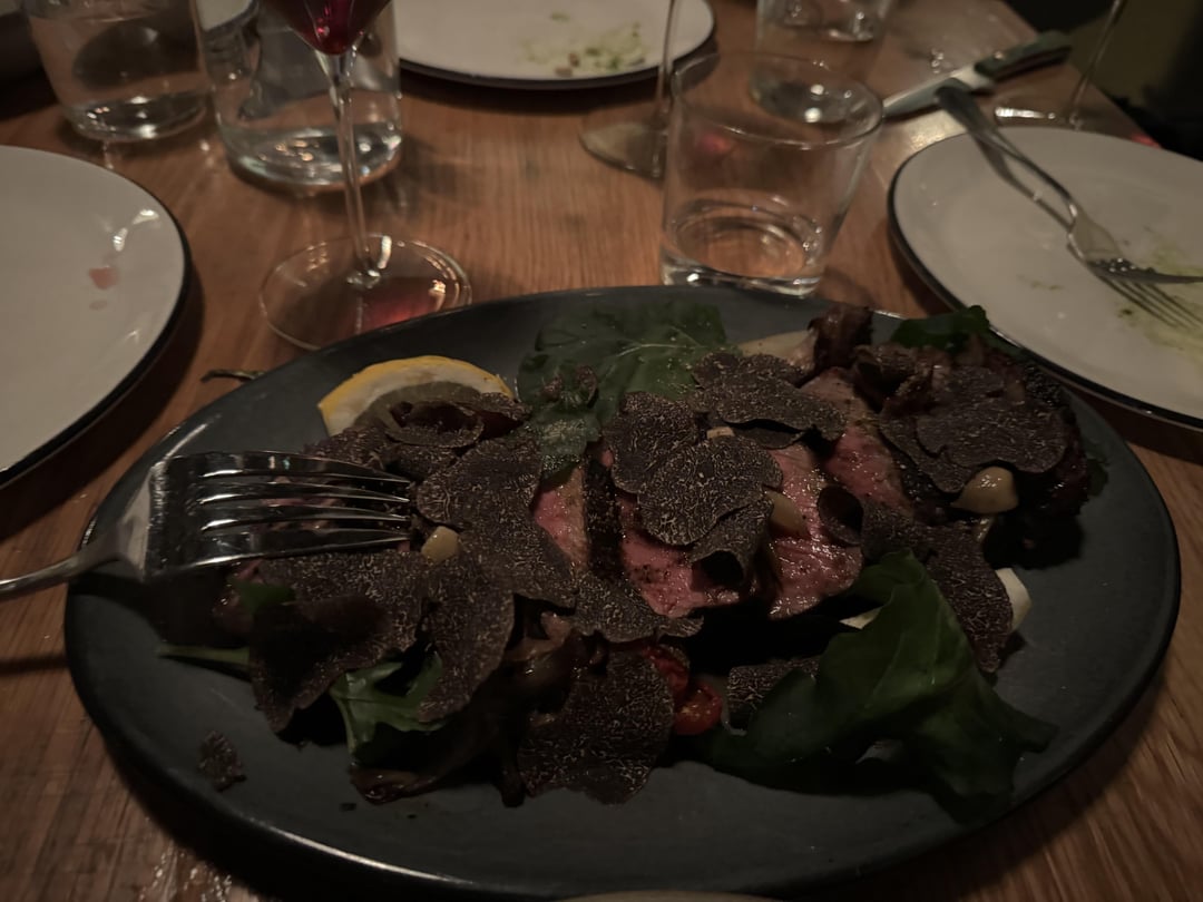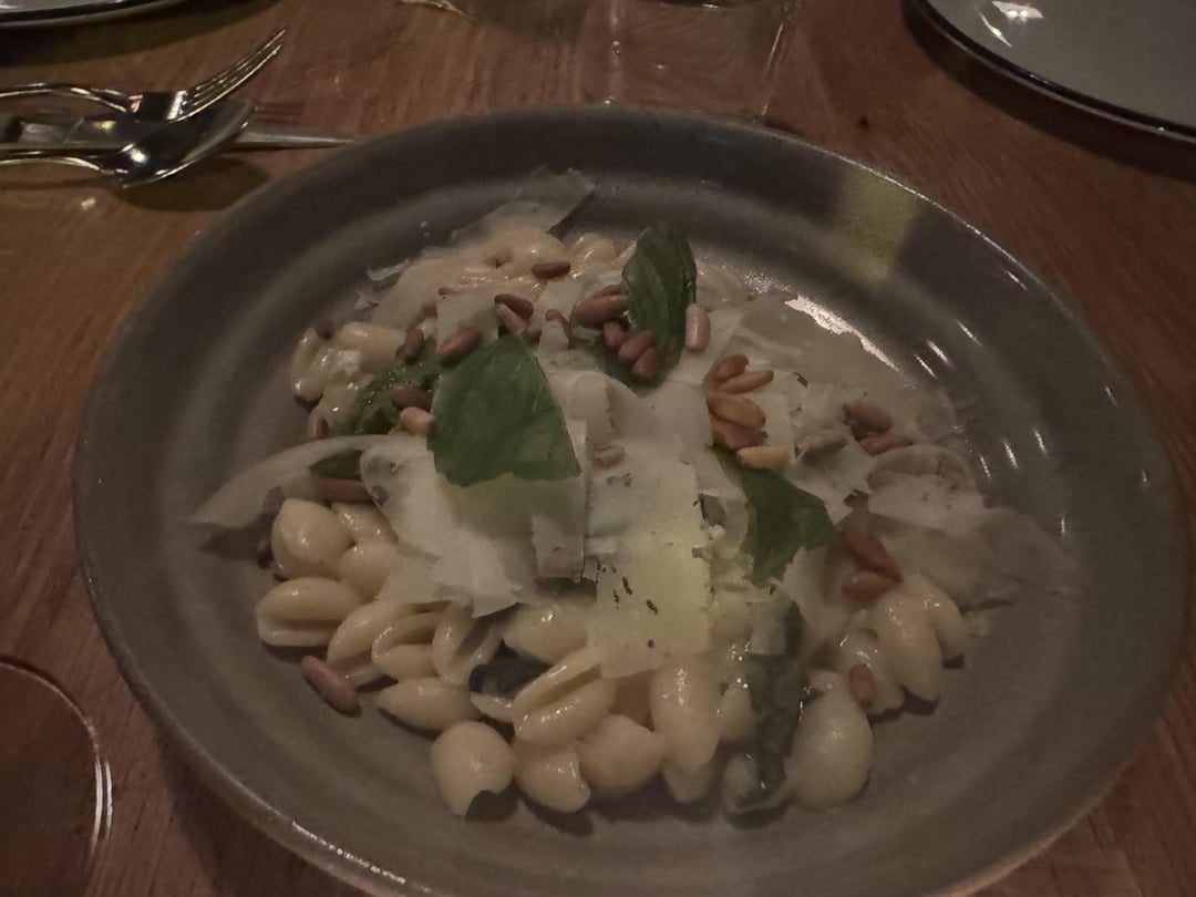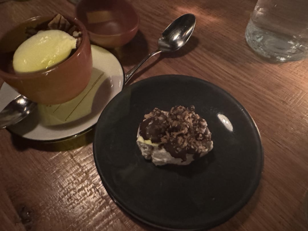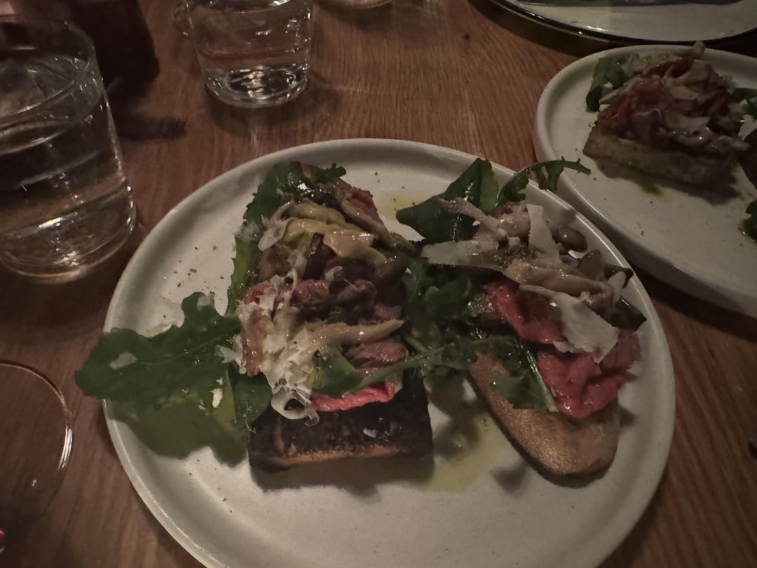 We had the Burrata, a daily special wagyu bruschetta, gnocchetti con pesto, cacio whey pepe, prime Black Angus strip steak w/black truffle, Ragu Alla Napiletana, citrus dark chocolate sundae, butterscotch budino, and forgotten cookie.