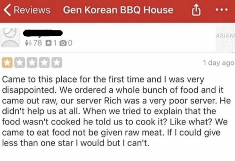 lol probably just a troll, but i’ve met a handful of people who whine and bitch about kbbq and having to cook your own meat. makes me want to rip my eyes and hair out every time