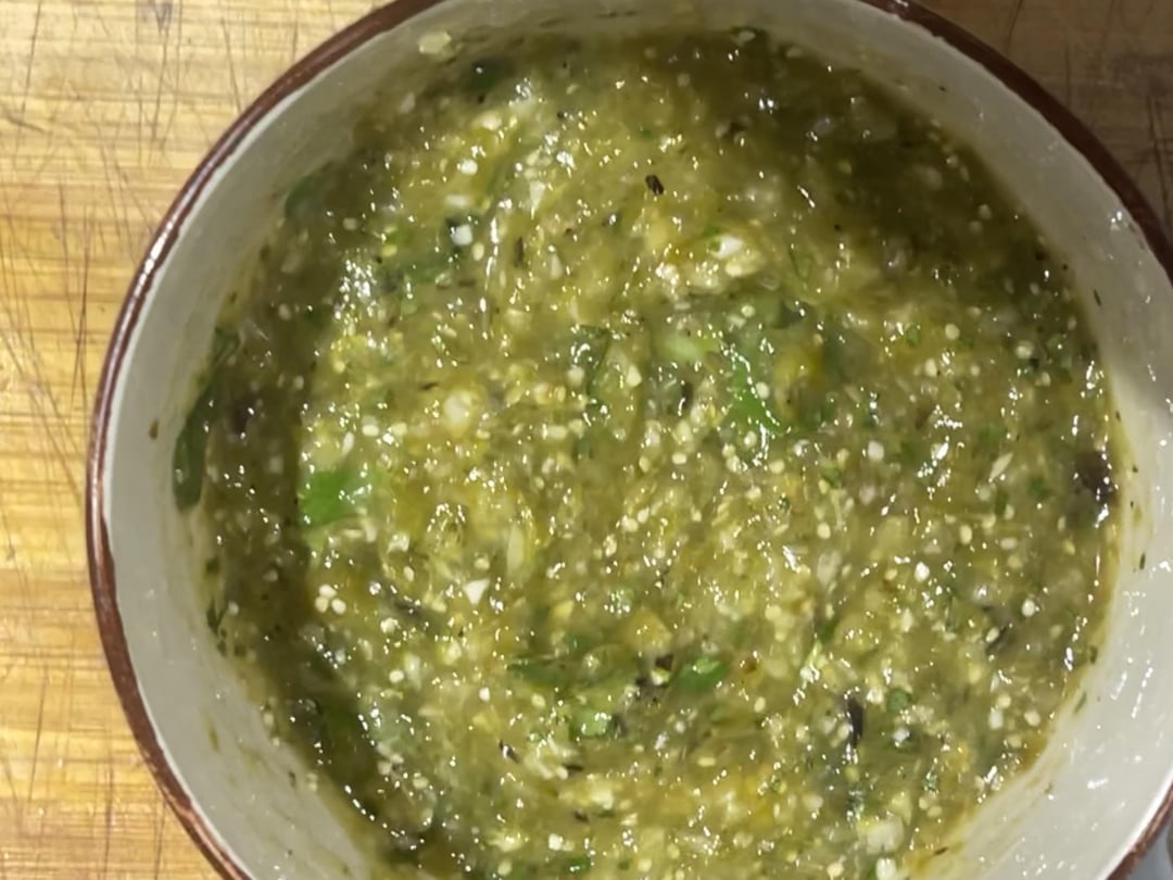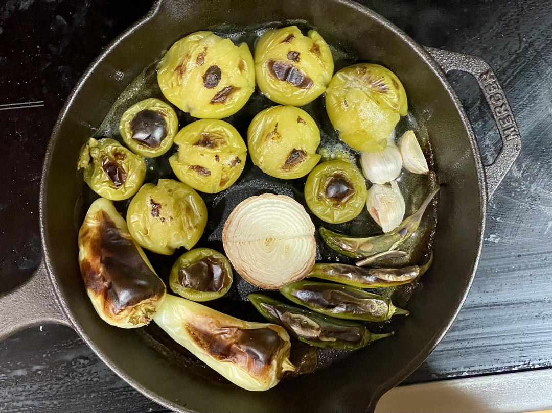 Tomatillos with 4 cloves garlic, 1/3 white onion,