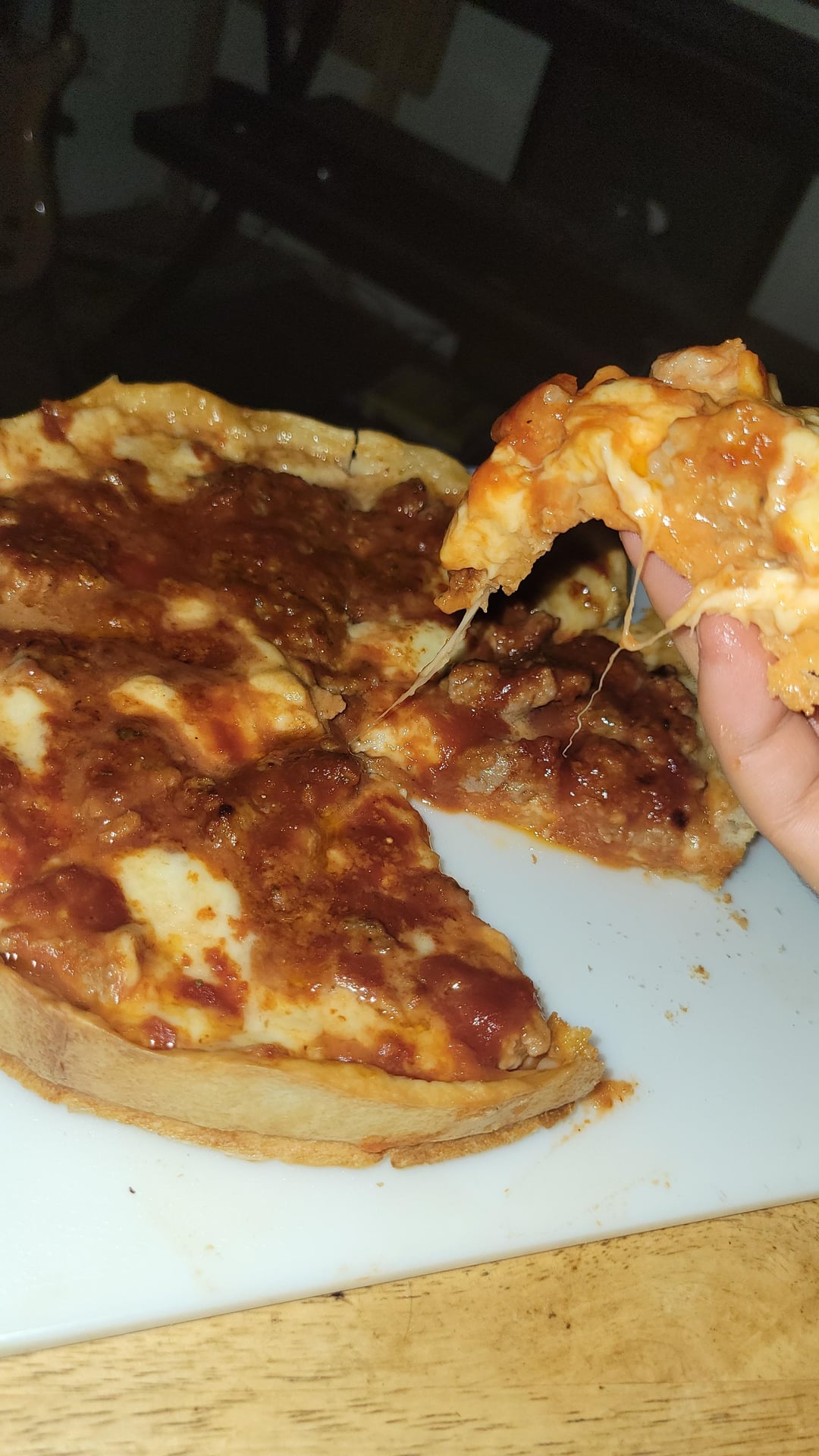 The sauce I used was too watery so the pizza looks like shit (bad cut job too)… believe it or not it was fkn delicious tho