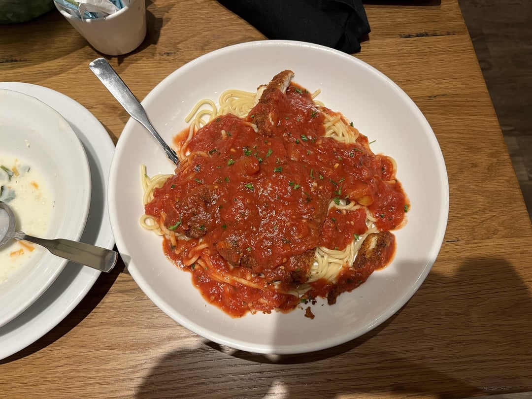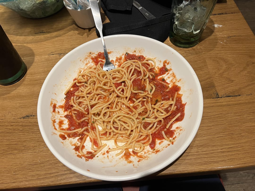 slide 6: this is how much I left of the pasta, so I probably ate about more than half