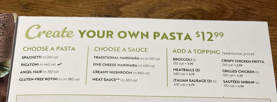 slide 3 + 4: make your own pasta, spaghetti, traditional marinara, and crispy chicken fritta