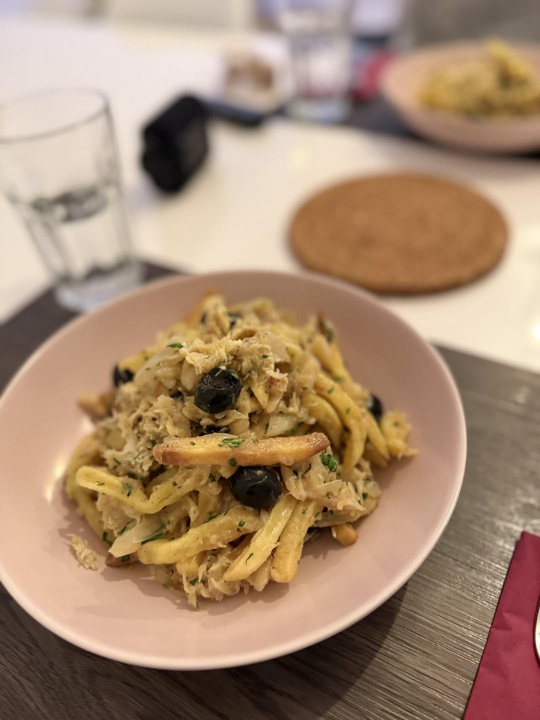 Had 2 pieces of Tiramisu and half of the bread on the 3rd pic. The second pic is codfish fried in olive oil with French fries (air fried).