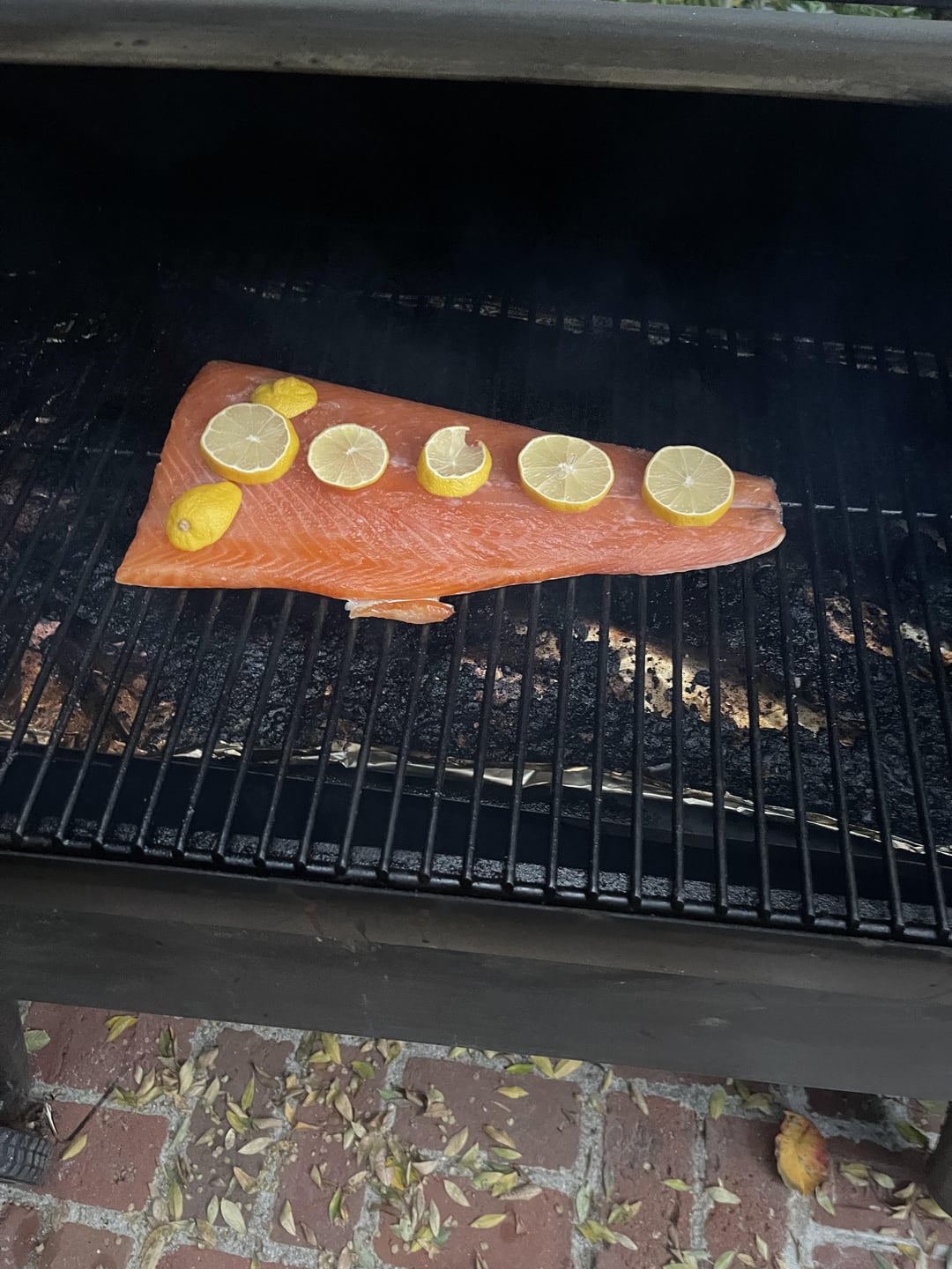 Then I smoked it for 4.5 hrs at 150-180 F with some sliced lemons on the meat.