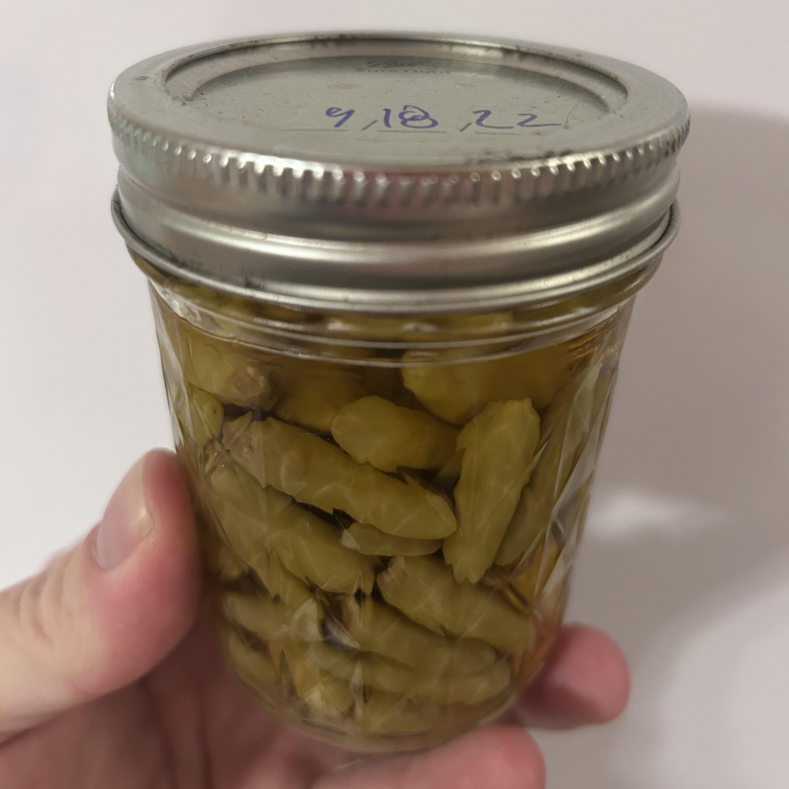 Recipe could not be simpler, just can chiles in cider vinegar. Threw in some peppercorns and mustard seeds out of habit and a 1/4 tsp of pickle crisp.