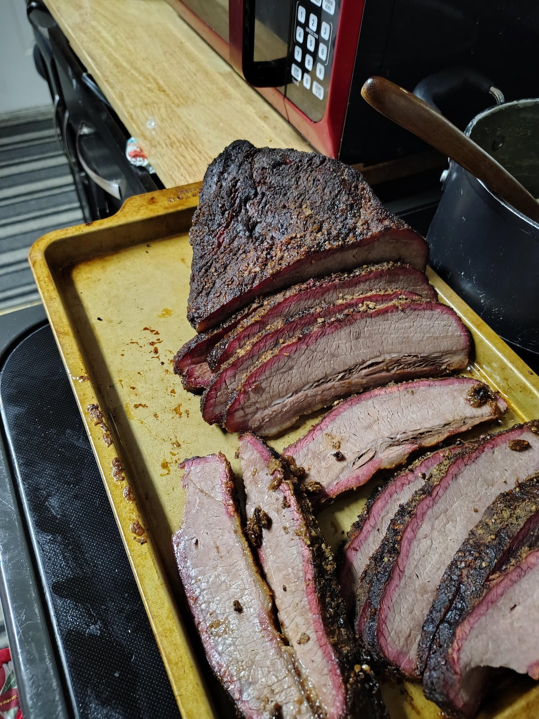 Wanted to share the new family tradition of brisket for Thanksgiving. Wife doesn't particularly care for any kind of turkey so said she wanted something different so brisket it was… Oak pellets at 180 over night wrapped at 155ish and pulled when flat hit 195 to hot hold in my oven at 180 for a couple of hours. Used Kinders the blend as seasoning.