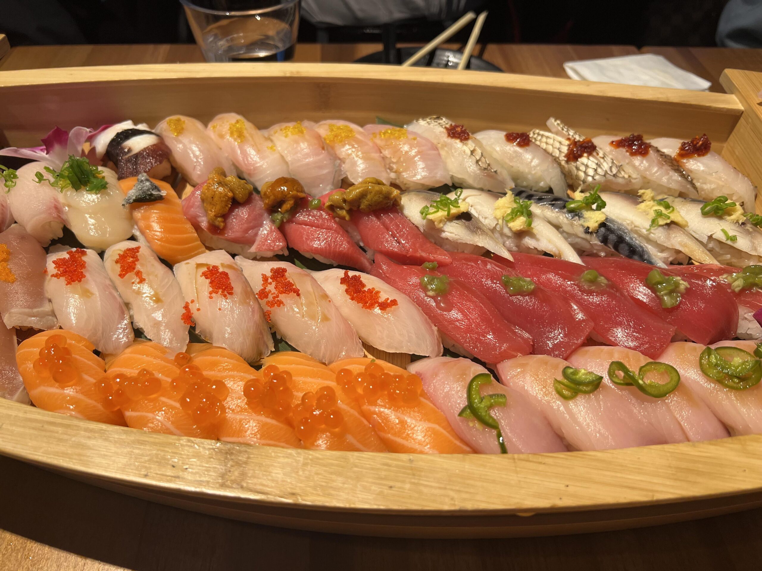 I love seeing boats like this. Obviously rolls have their place, but I appreciate good fish slices on rice when doing a special dinner