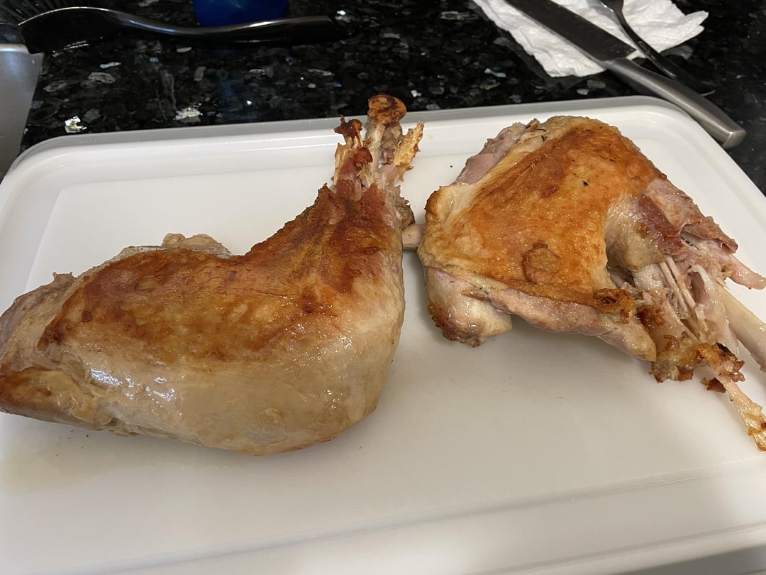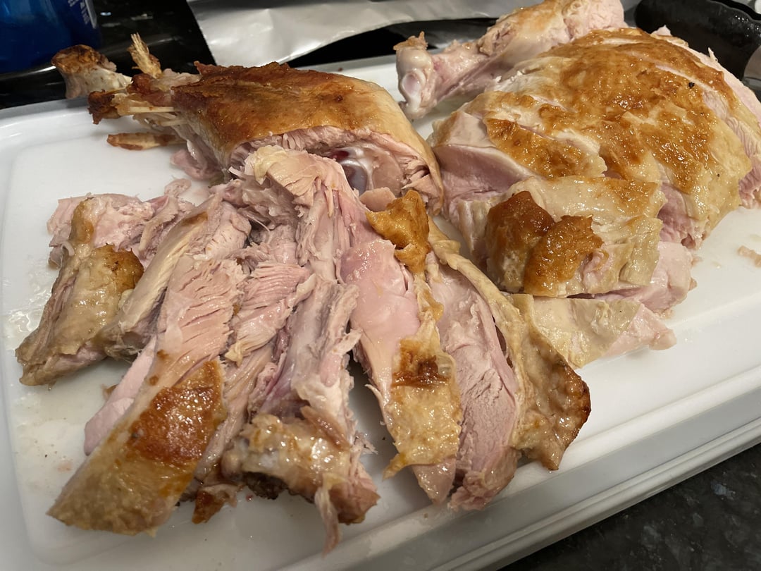 This was my second year of sous vide turkey. I butchered the bird and cooked the dark meat for 24 hours at 150 and the white meat for 12 hours at 130. This turkey was the juiciest and best I’ve ever had. I really think it makes a difference getting fresh vs frozen turkey. I have it a quick sear in the cast iron because a) I had a lot of other things going on on Thanksgiving day b) I’m just used to it from cooking steaks.