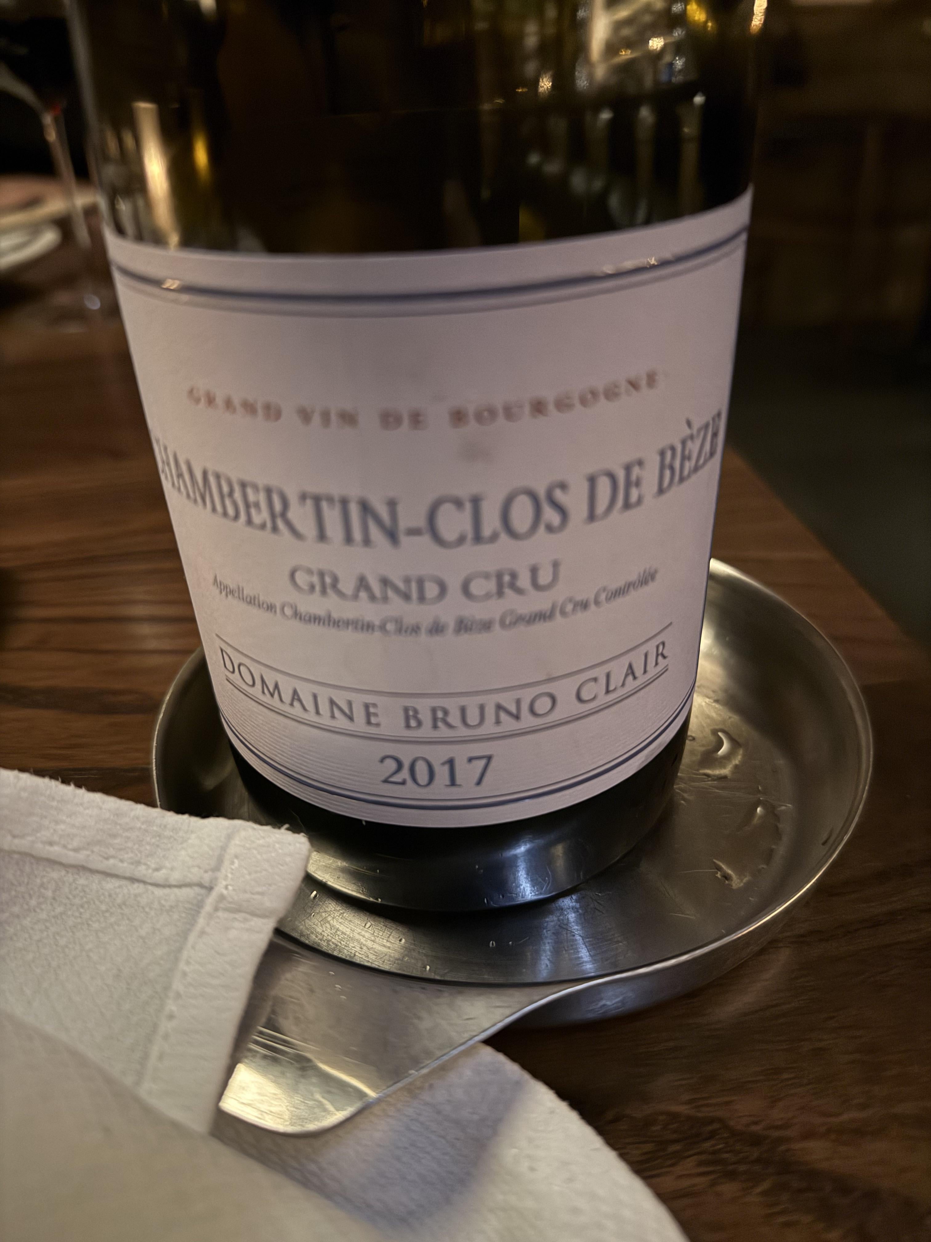 This is the third bottle of this wine I’ve opened and my experience this time was more similar to my first experience with this wine in 2022 when I had it in Miami. Just stunning nose with super pure red fruits and lovely palate with ample acidity. We had this open for an hour or so before it was poured and it needed every bit of that, because it took another hour or so to really open up, but after that it was just sensational. It grew in power over the course of the evening and the finish was really where it shone ultimately. This was very similar to the Miami evening where we held the bottle upright for every last drop. Amazing. I have the Bonnes Mares on deck for later this week which I’m excited about.