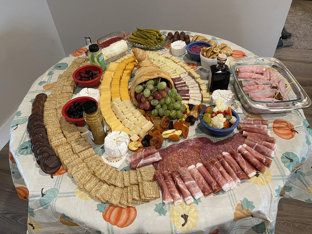Not as fancy as some I have seen lately but I was very happy with how this turned out since it was my first attempt at doing charcuterie for a big group. Plus everyone really loved the cornucopia and enjoyed sharing what their favorite things on the table were and thanks to my BIL requesting it, we discovered pickled asparagus is now a family staple for everyone 🖤