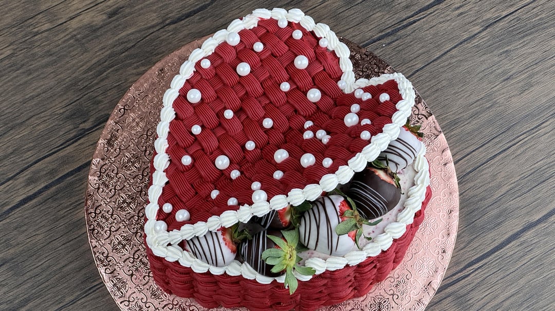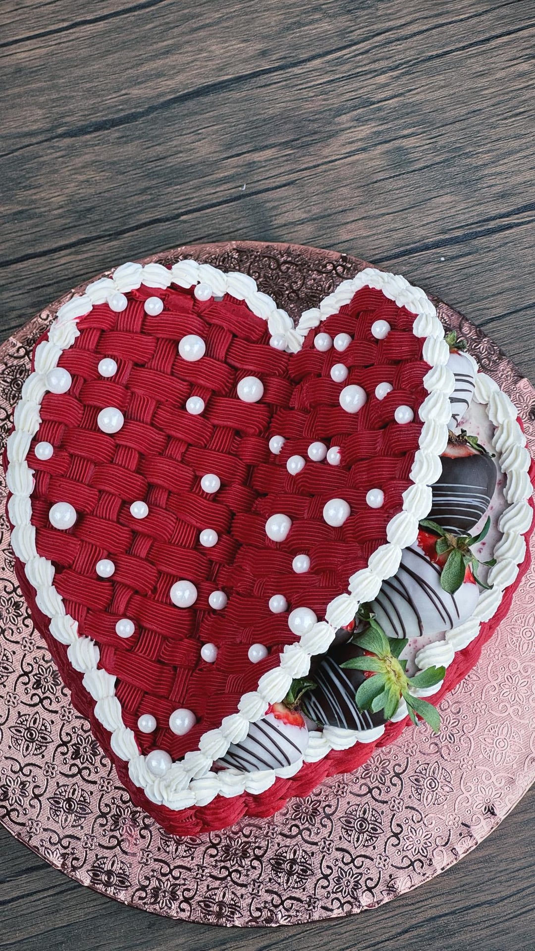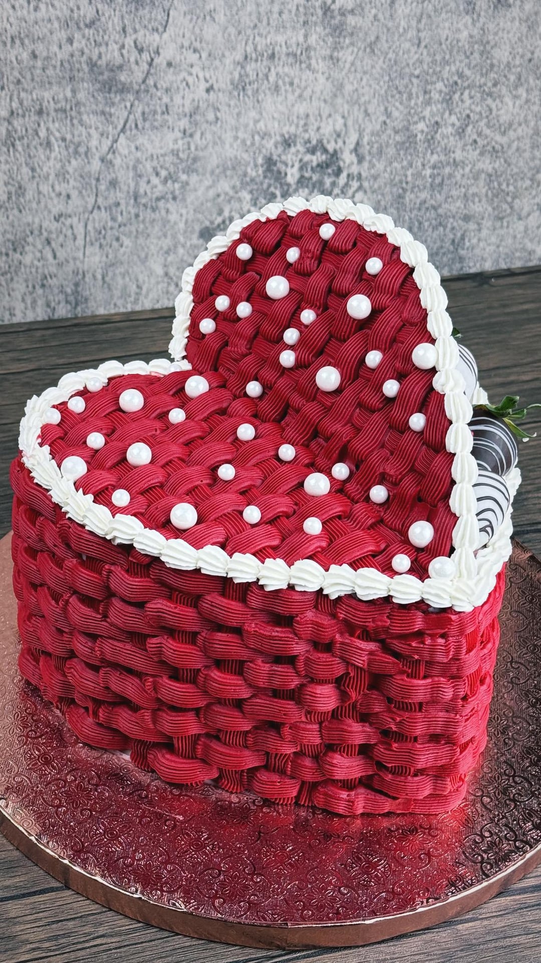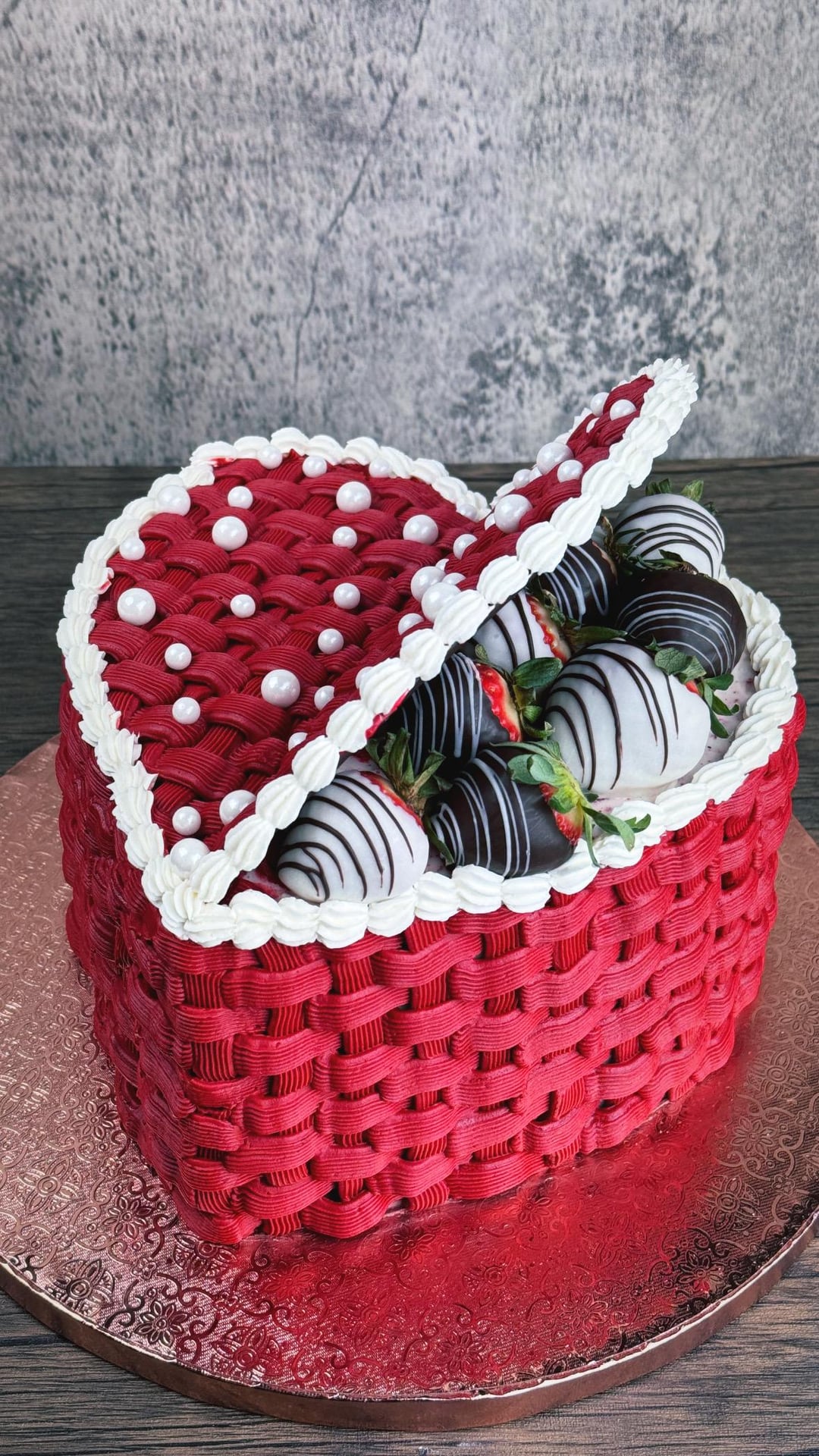 I made this heart-shaped basket cake for a friend’s recent couples shower.