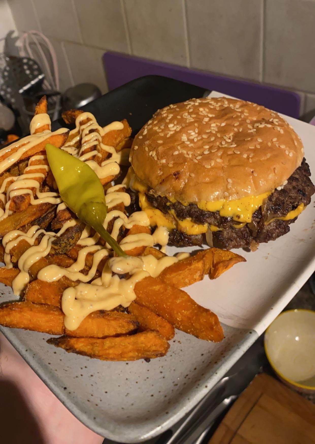 With some spicy mayo sweet potato fries (I swear the onions are in there just hiding) by robh_14 4 Comments No-Budget4929 10 months ago Well done 🫡 zilpond 10 months ago Wow ss7164 10 months ago 💯 would smash stilleternal 10 months ago What kind of onion would someone recommended for this style burger?Write A CommentYou must be logged in to post a comment.