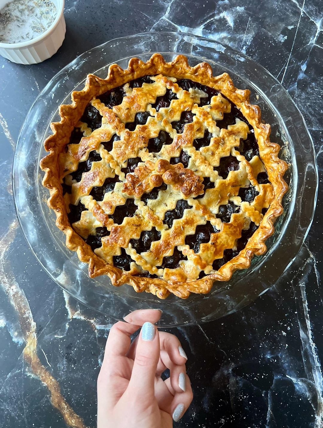 [Recipe](https://www.halfbakedharvest.com/blueberry-lavender-pie/)