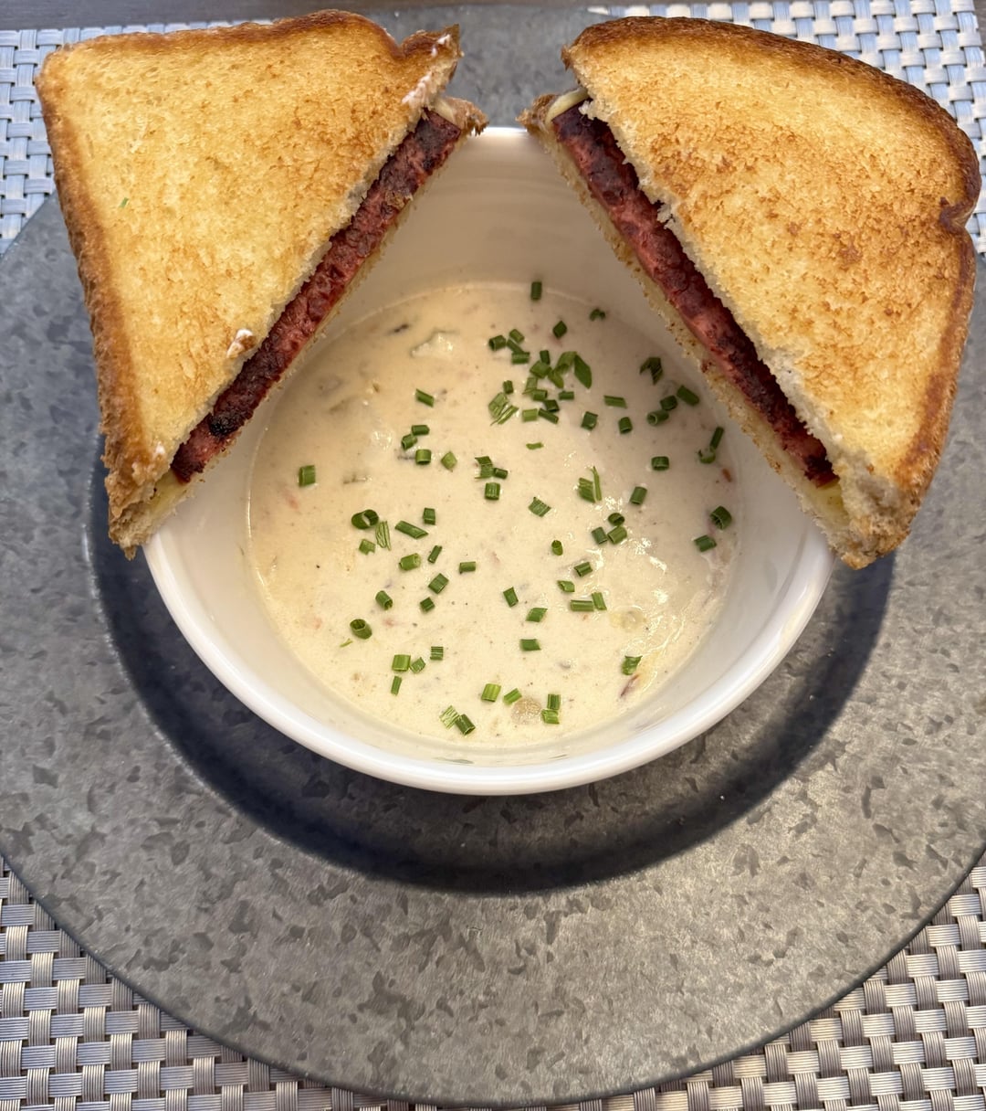Fried Bologna Grilled Cheese (Gouda) & Potato Soupby Both_Owl_2393 2 Comments PetroniusKing 11 months ago 🤤👍😘 Delicious looking sandwich …. I like bologna or turkey or salami or bacon on my grilled cheese sandwiches . GoatCovfefe 11 months ago Looks like a good melt.Write A CommentYou must be logged in to post a comment.