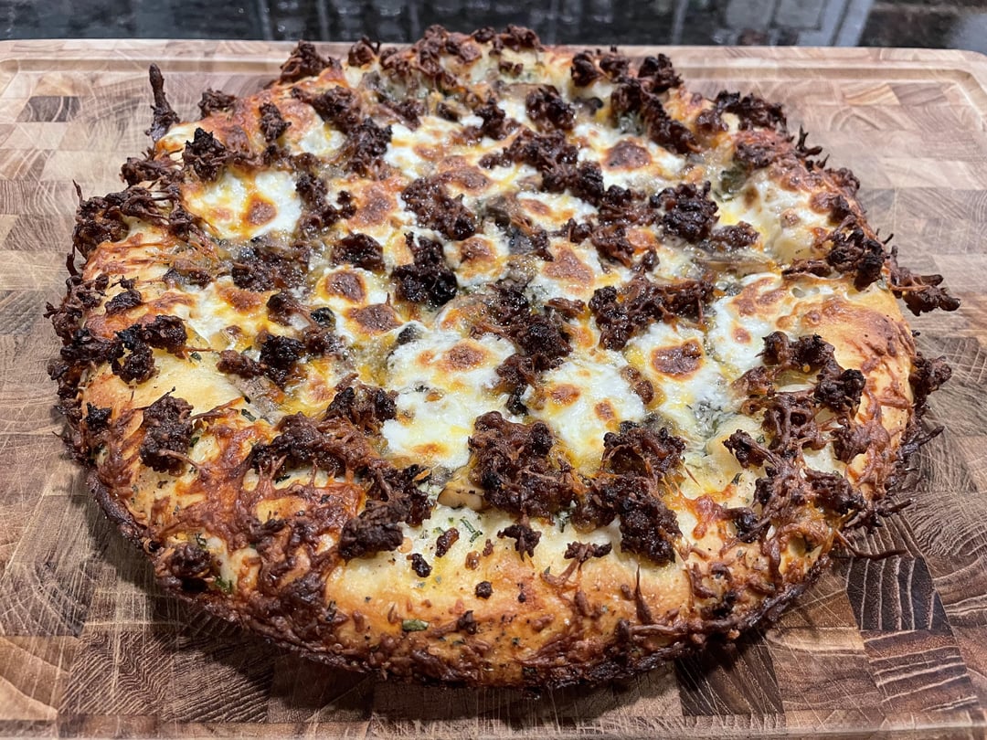 Cast iron style stuffed crust pizza with spinach and artichoke dip, mushrooms, and Italian sausage.by blindtiger17 Write A CommentYou must be logged in to post a comment.