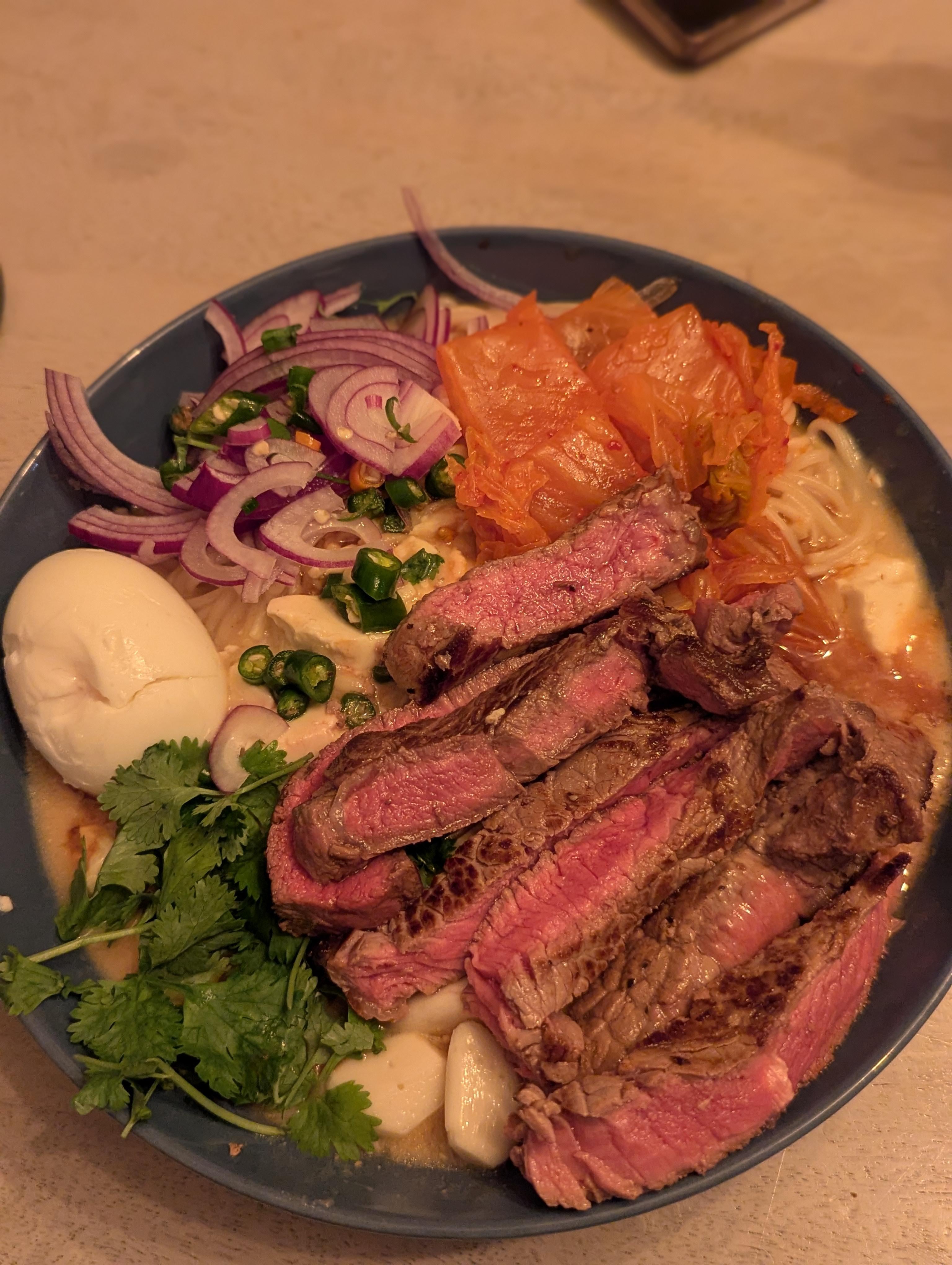 Bed of pak choi under all the noodles and the egg was gooey but I gobbled it up instead of taking a money shot.