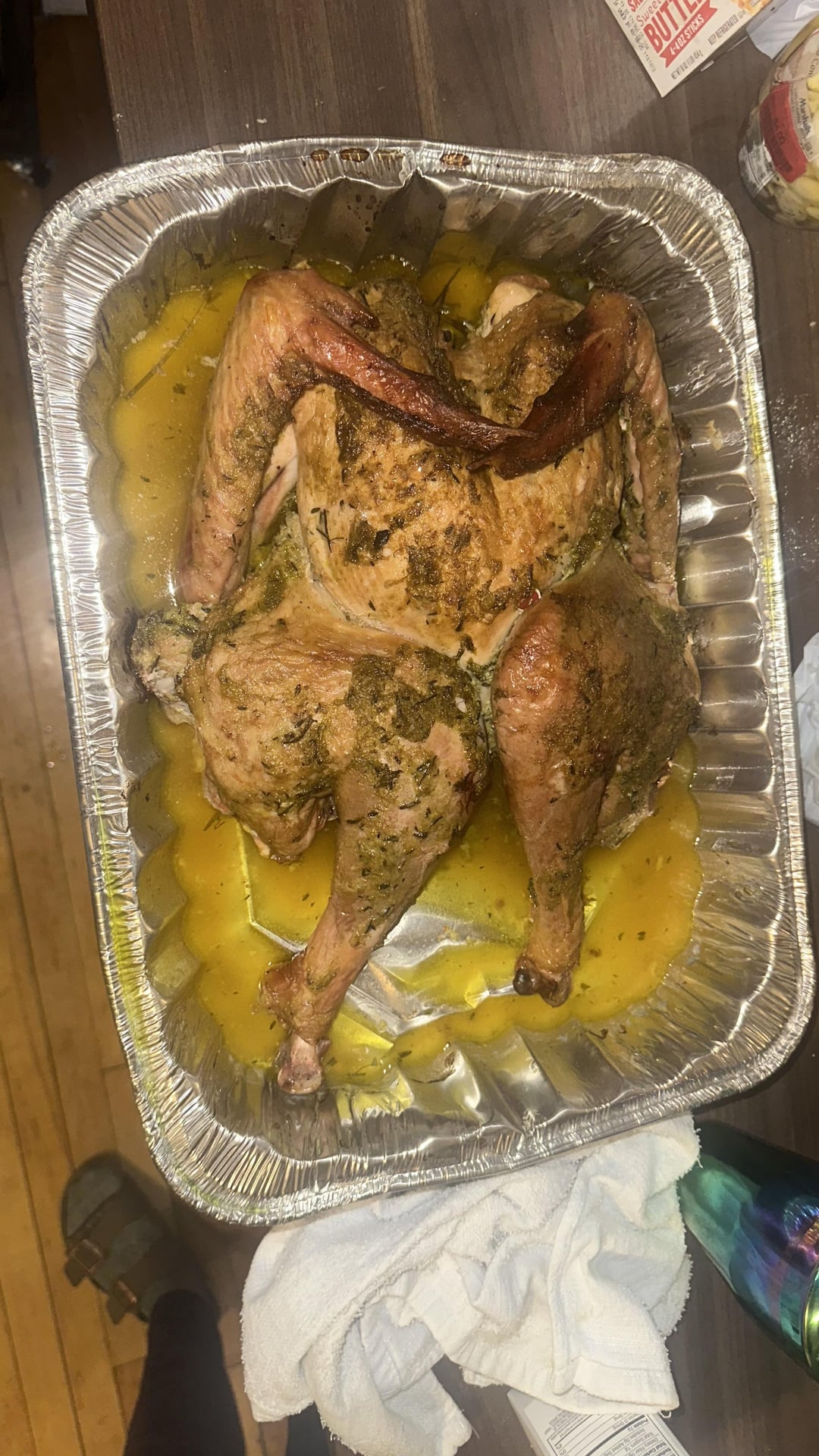 12 pound turkey wet brined, injected, and covered with herb butter over and under the skin, before being smoked over sliced lemons and herbsby Express-Ad2538 Write A CommentYou must be logged in to post a comment.