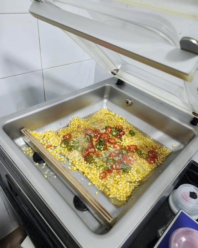 You can “quick pickle” things using a vacuum sealer/chamber so I assume that was the idea here but it’s usually done in metal gastros or plastic