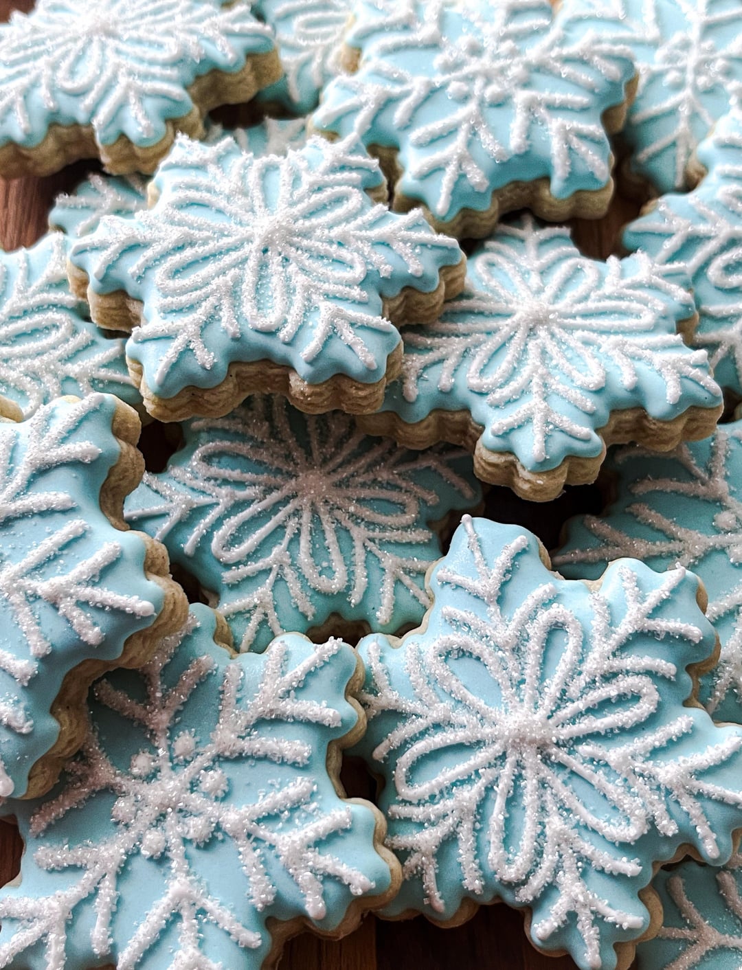 Did these mini snowflakes and thought they came out cute! Super simple to knock out fairly quickly. 2 dozen took about an hour and a half to do, brushed off excess sprinkles the morning after decorating them to be sure the line work was dry enough. Great designs for anyone looking for ideas for holiday events/markets!