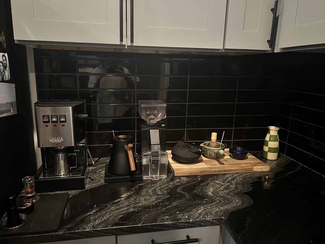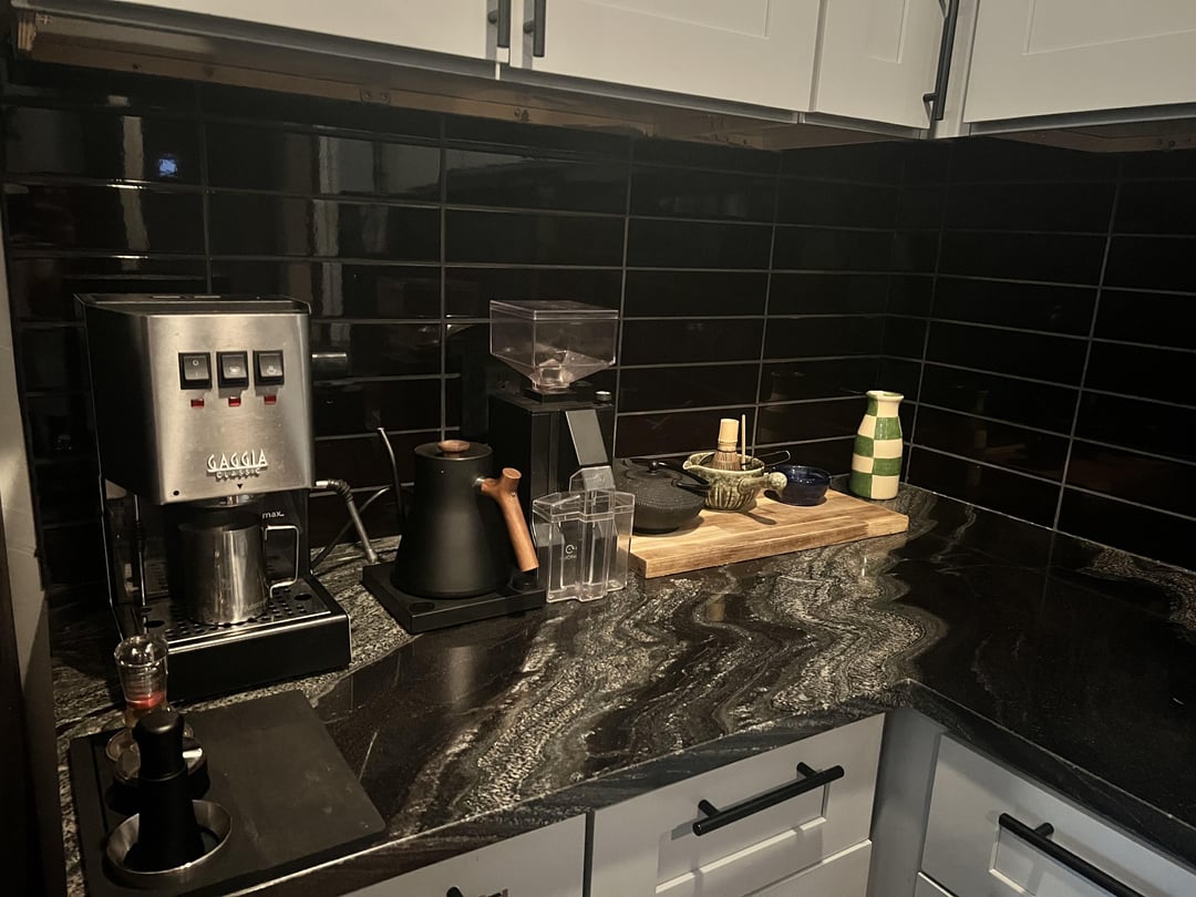 How can I improve this space?by theHiddenTroll 6 Comments dpbrown777 1 year ago Lighting under the cabinets. Masterpiece-Little 1 year ago Replace cutting board with a tiered shelf for height and storage. Display coffee beans in clear jar NaturalSuccessful521 1 year ago I’d switch the kettle and the grinder around theHiddenTroll 1 year ago Equipment:Espresso Machine: Gaggia Classic Pro EvoKettle: Fellow StagGrinder: Eureka Mignon Crono cfbayssr 1 year ago It’s already been said but lighting under the cabinets. Dudebits 1 year ago More coffee and coffee-related products.Write A CommentYou must be logged in to post a comment.