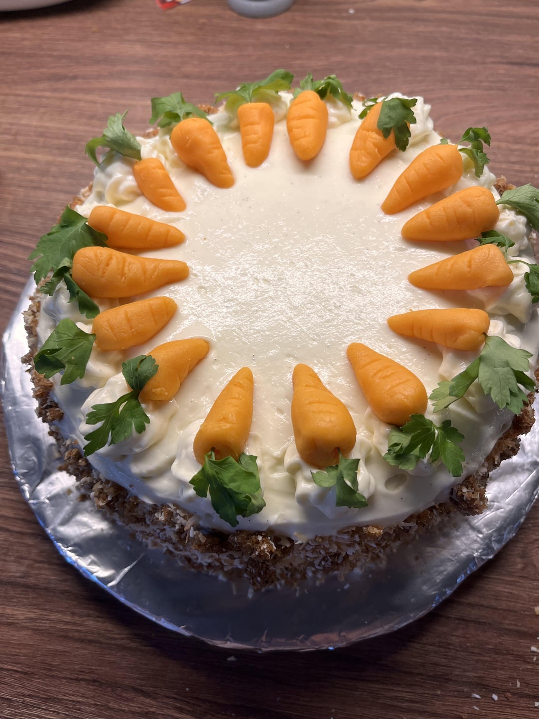 is that… parsley? on the top? no hate, just curious- i’ve never seen parsley used outside of savoury dishes. why not use green frosting, or more fondant like the rest of the carrot decorations? also, is the parsley expected to be picked off prior to eating the cake, or is it kept on, and if so, does the flavour conflict with the cake at all?
