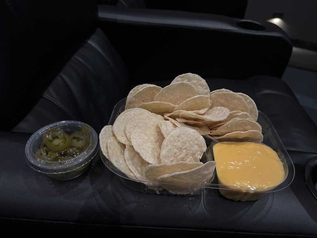 The last 2 pics are just movie theater nachos with a Sprite. The chain is ACX. The site has zero information on food. The theater also had no menu for the food. One size for the nachos and the drink was a small.