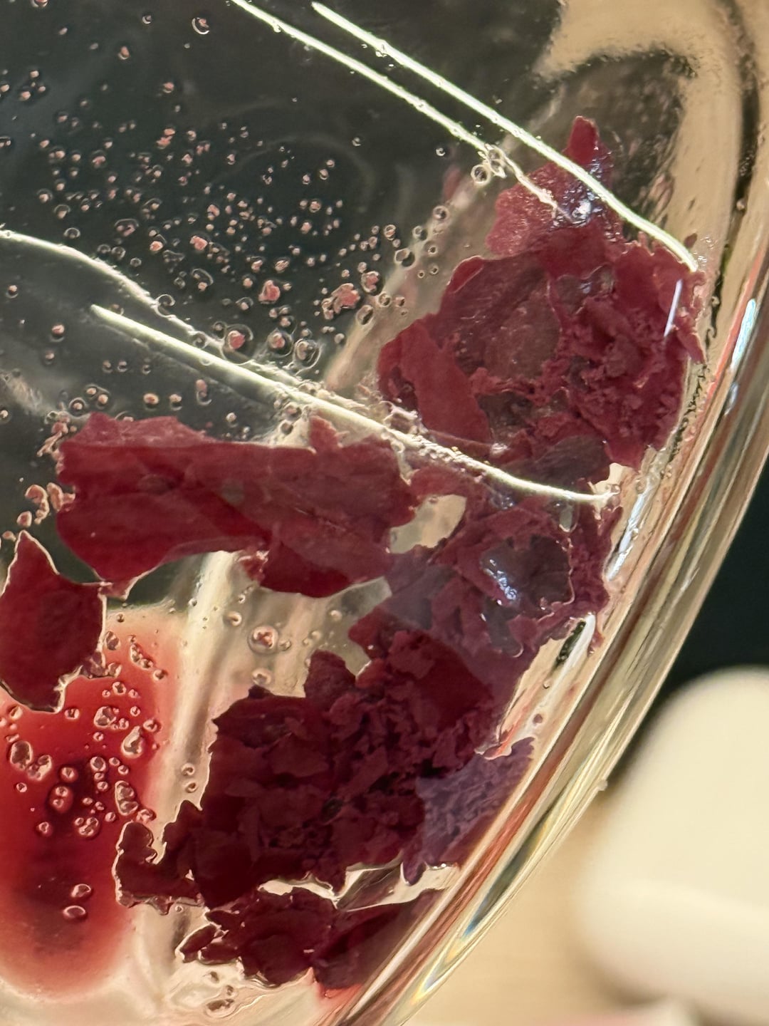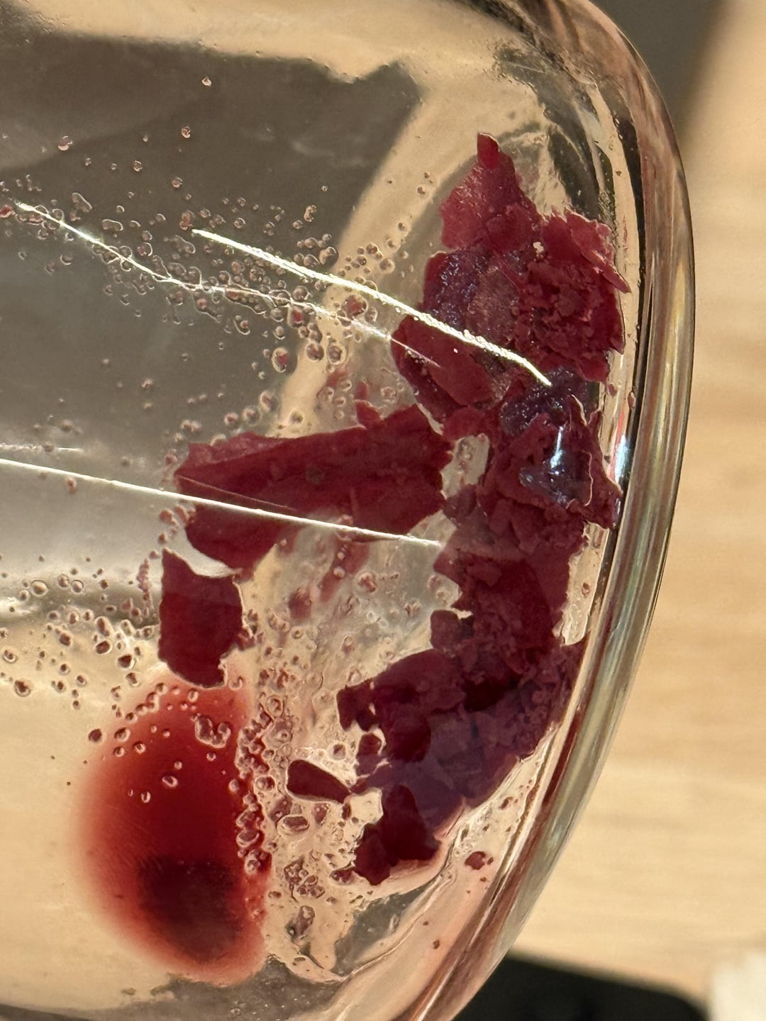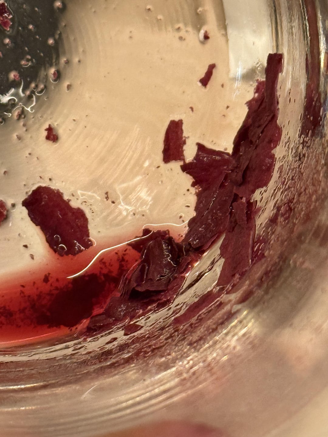 Since it’s a wine from 2021 I didn’t think about decanting is. On the bottom I found these really big chunks of flaky sediment … at first I thought it were pieces of grape or skin.