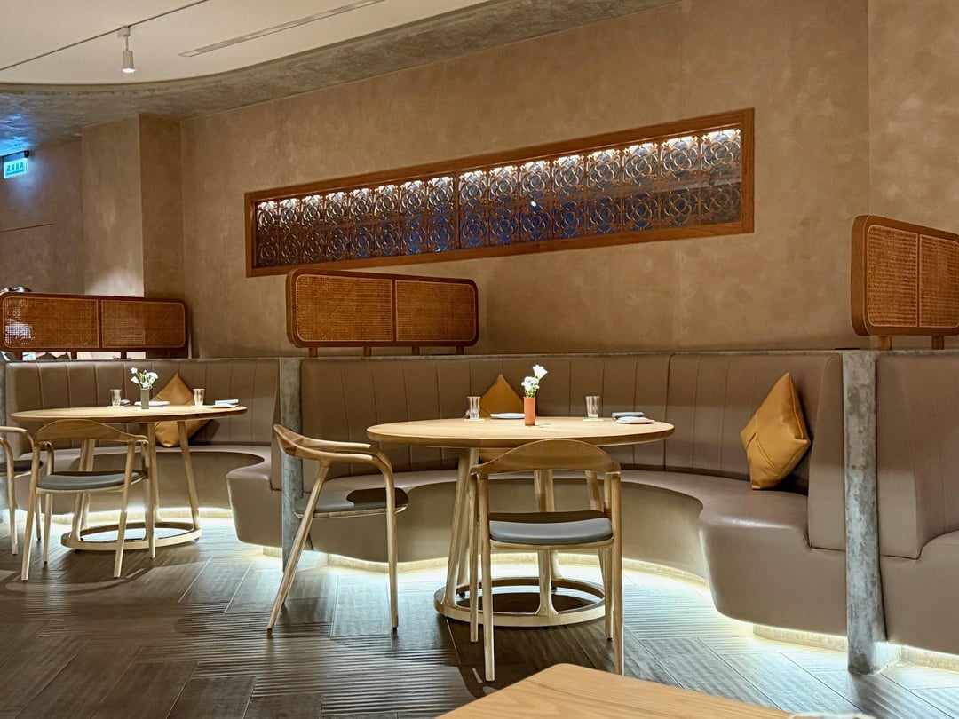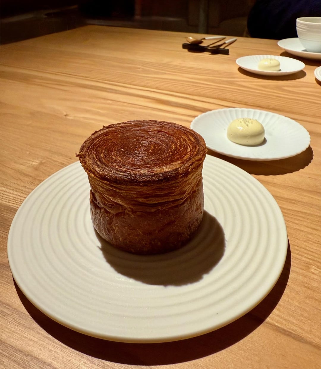 1. Amberjack with Starfruit and Jackfruit – a great starter course, looked great visually with the arrangement in a leaf and interesting taste being a little sweet and a little spicy. Really nice. 2. Sauid Ink Noodle over Langoustine and Abalone with Oyster Sauce – when this course came out it almost looked like a painting with the flowers and plants over the squid ink Taiwanese noodle. The oyster sauce was then poured over the squid ink noodle. While it looked visually stunning, the taste was just OK. The squid ink noodle didn’t work with the langoustine and abalone. Still a fun dish! 3. Porky – the first of three dishes that weren’t on the menu. This is their take on the Japanese snack Pocky. The JL Studio version uses bah-kwa which is a type of salty-sweet pork jerky that is combined with a Magao pepper and butter. You get a couple of sticks of the Porky which was great. Another fun dish! 4. Grouper with Chamomile and Ginger – this is one of JL Studio’s signature dishes and is their take on Singaporean chicken rice or as they called it ‘chicken rice without the chicken and (whole) rice’.’ It somehow did taste like chicken rice! They use bamboo shoots on top of the grouper and the sauce is also made with jasmine rice. It comes with a bit of green chili. Great dish, and shockingly tastes like chicken rice. 5. Squid with Curry Leaves and Sambai Tumi – fried squid placed on top of three types of rice. I believe they were made with coconut, curry, and turmeric with a bit of added chili. They recommended to try each of the rices separately then mix everything together and enjoy. Bold flavors, everything was great separately and interesting mixed together. 6. Bread – served with the next dish. The interior of the bread had a shrimp and chili paste, it was really good. 7. Fish Curry Ice Cream – the second dish that isn’t included on the menu. The fish curry ice cream comes with a cold coconut ‘ice cream’ with the hot fish curry underneath to bring a mix of hot and cold dishes together. Really enjoyed it.