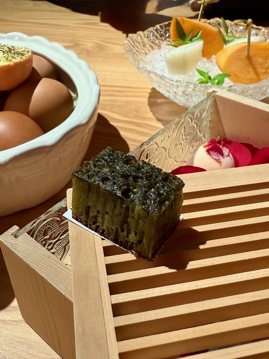 9. Hokkaido Rib Eye with Pistachio and Pineapple – a nice steak that worked well with the pistachio. This dish also came with a couple of small sticky rice packed in bamboo leaves to add a starch that you can dip in the sauce. Another great main dish.