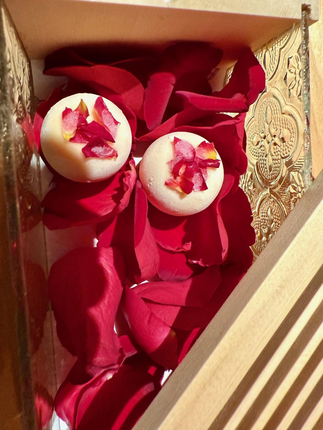 13 and 14 – Sweets of Ambon and Bandung – these come in a box. The Ambon on top was OK. The Bandung is a rose water ice cream in white chocolate, very refreshing and aromatic with the rose water. It was a great last bite for dessert.