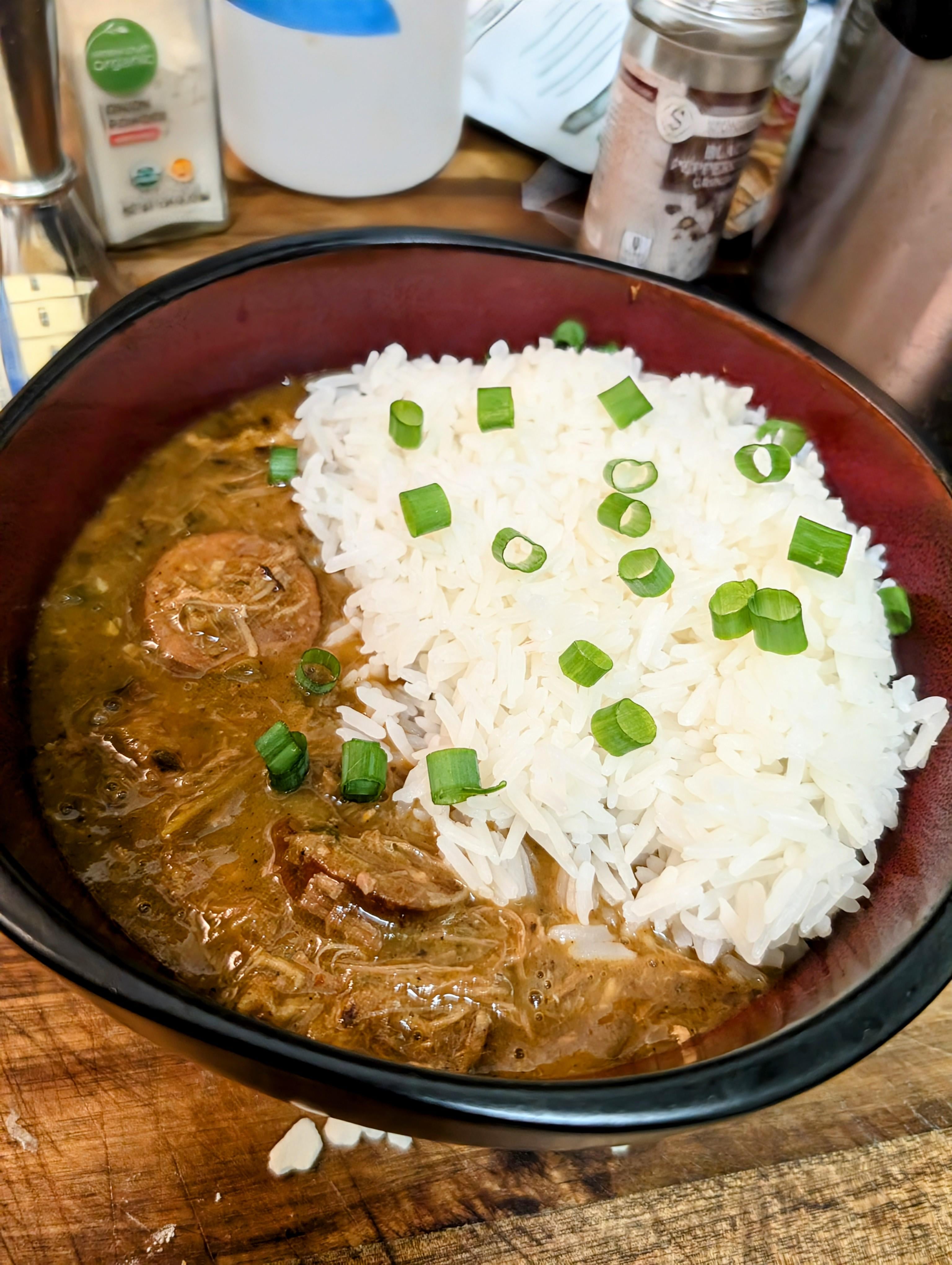 Cured chorizo, braised chicken thigh, 5 chilies (3 dried), sazon, dark mahogany roux, file. Took 3 hours, but 8 pints later 🤌 by truckercharles 4 Comments Accomplished_Job4037 10 months ago I just passed away captn-all-in 10 months ago That looks good… What is Oaxacan? CrackedOutMunkee 10 months ago I’m not disgusted by this therefore it does not belong here. the_short_viking 10 months ago Sounds so good. And your rice looks perfectly cooked!Write A CommentYou must be logged in to post a comment.