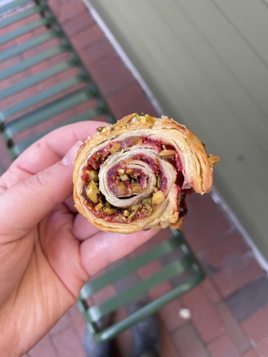 first is a raspberry and pistachio rugelach and the second is a gingerbread with lemon glaze