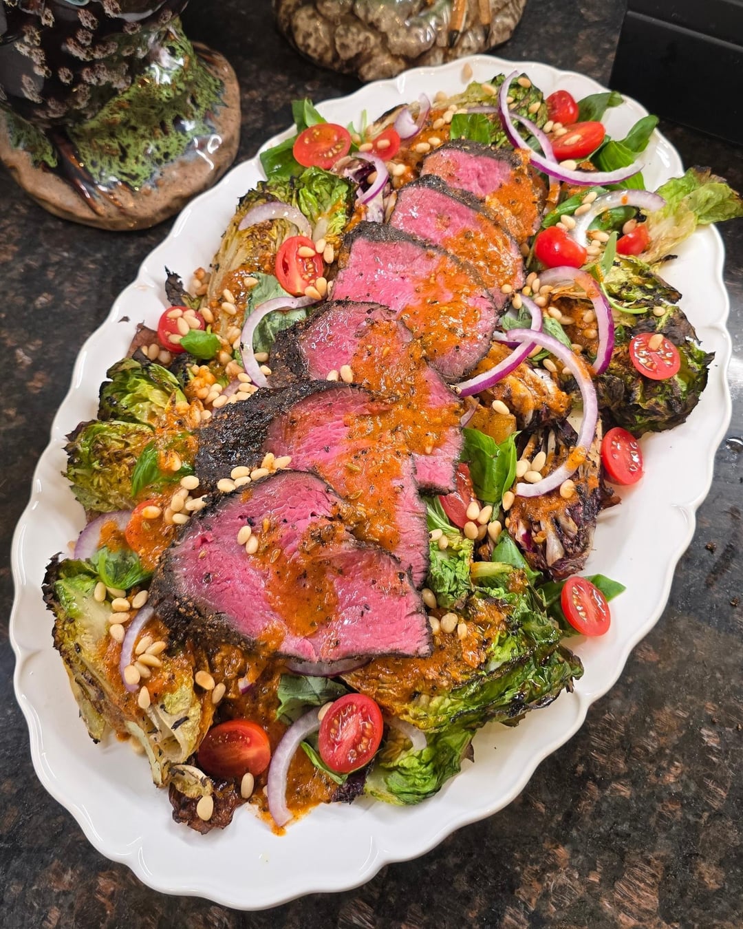 Blackened tri-tip salad with grilled radicchio: