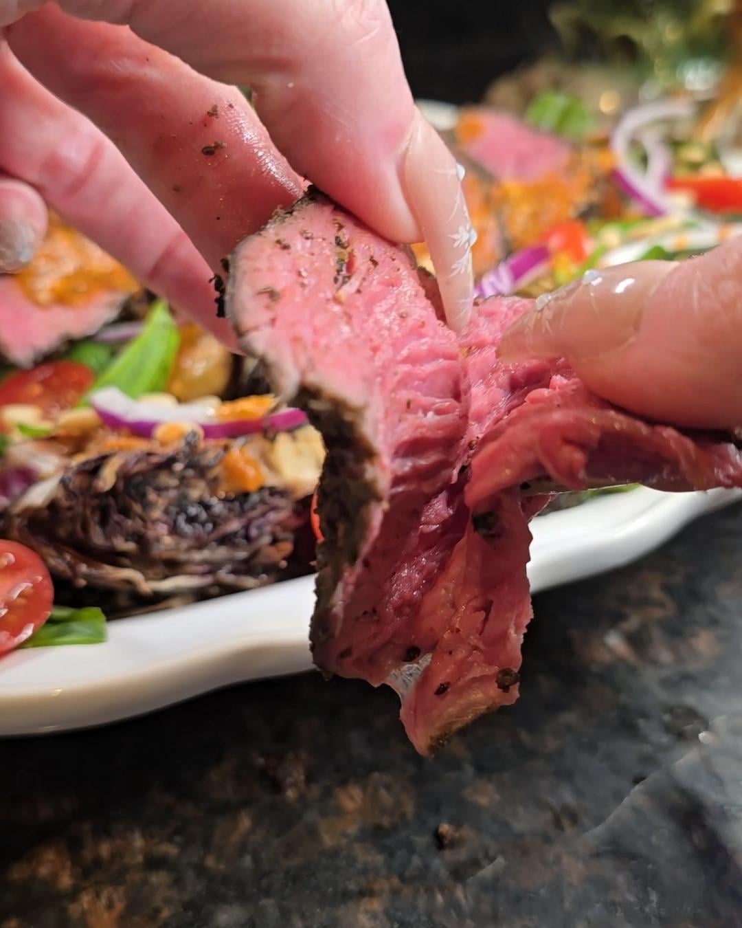 Looks amazing. I’m the opposite, I don’t like slightly cooked tritip. I think it needs a couple hours to soften and absorb flavor. I sear and wrap for about 3 hours @300 indirect. Sou vide and a sear sound like the perfect way to cook tritip.