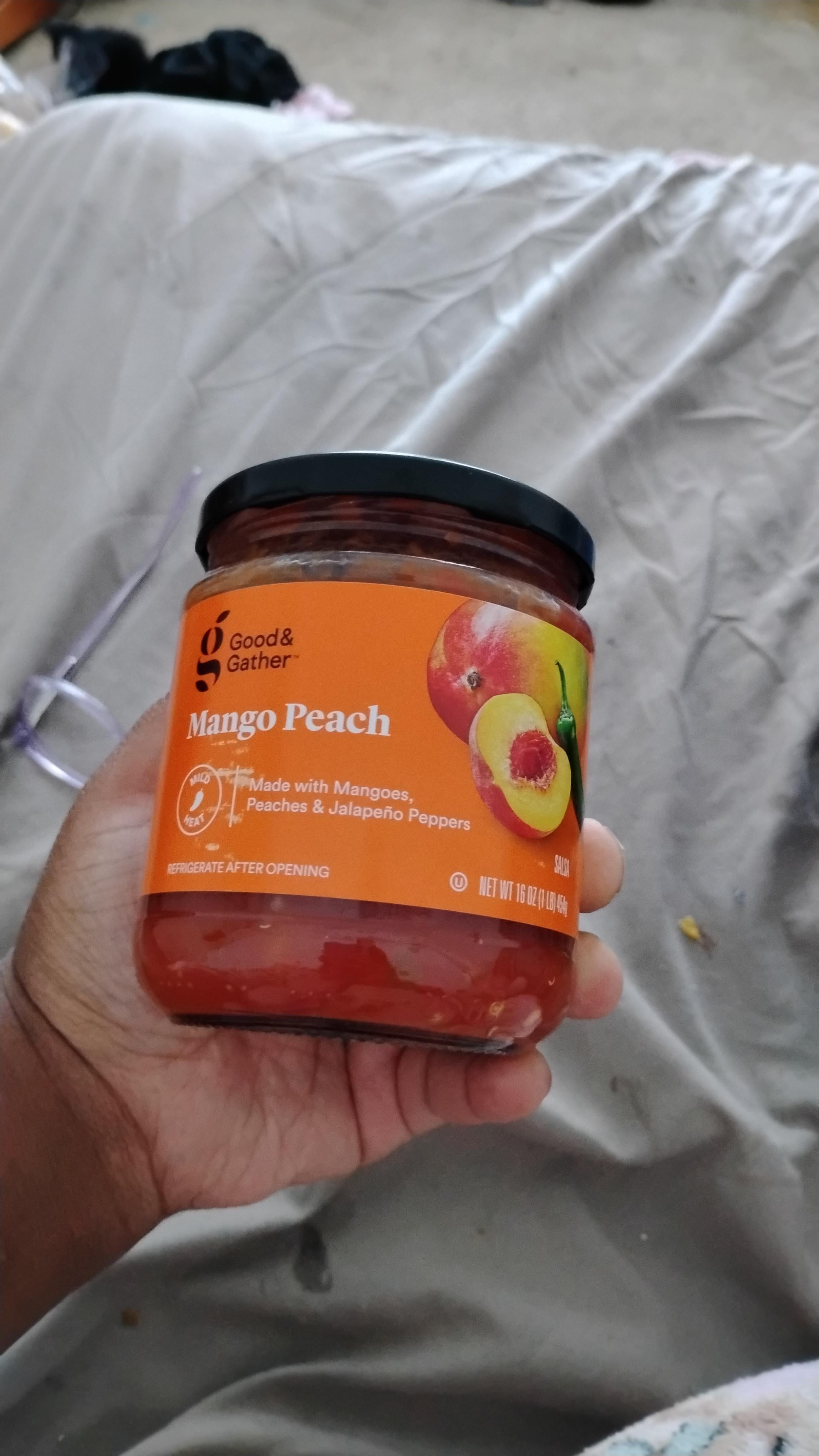 I was originally hoping to find the pineapple peach salsa, but my local Target didn't have any of it in stock today while I was there. This is still pretty good. It's sweet, but also still spicy.