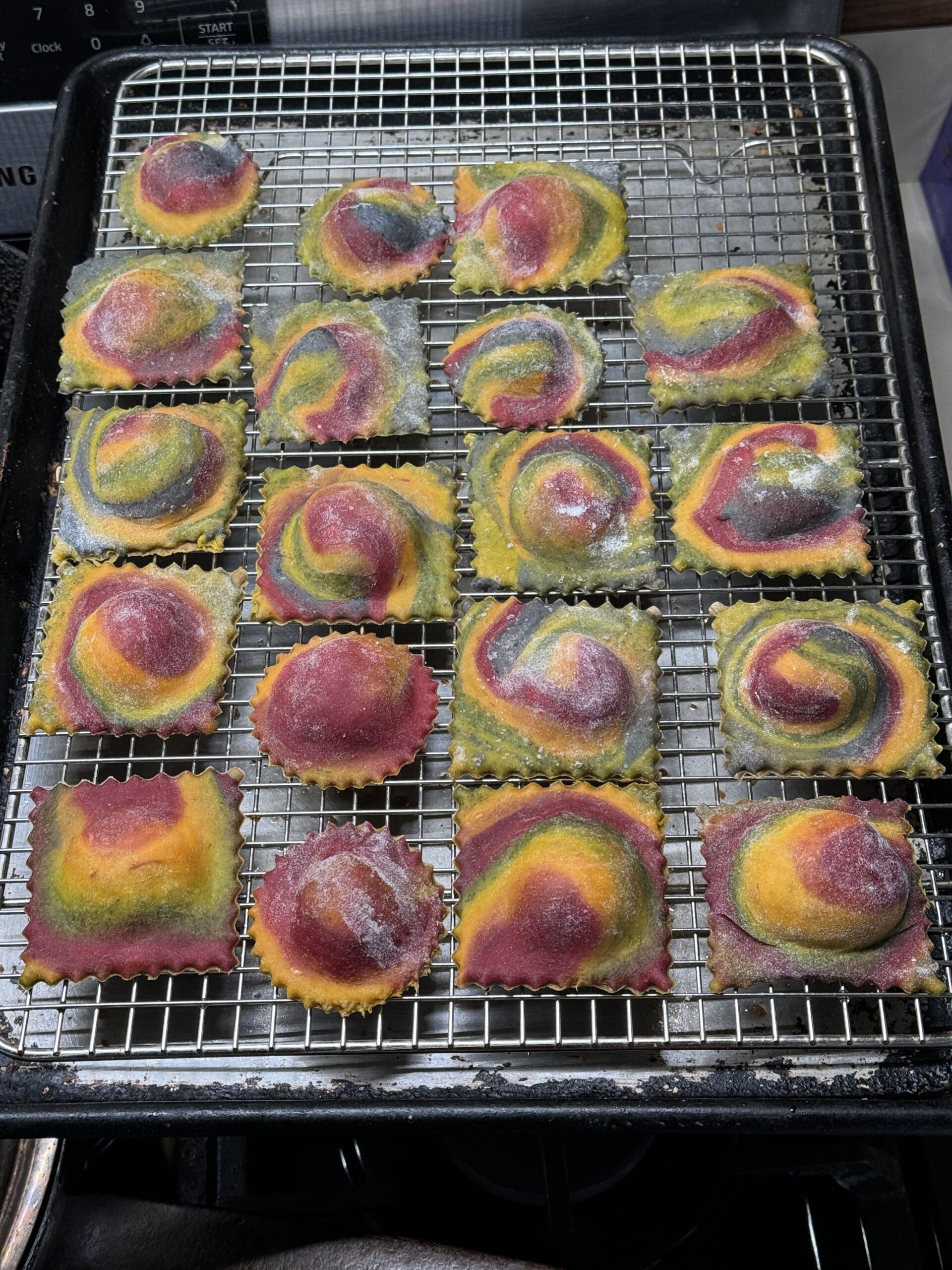 Last year I made ravioli using vegetables/spices for color…. What should I make this year? by InterestingAd1063 5 Comments Rare_Middle1727 10 months ago They look amazing rabbithasacat 10 months ago The same again, because they’re astounding. Candid_Definition893 10 months ago Psychedelic ravioli 🙂 Goldbeton 10 months ago Wow… They look amazing. Can you get more into detail how you got this look? Outrageous_Lack8435 10 months ago Oncore. They look mmmmmmmWrite A CommentYou must be logged in to post a comment.