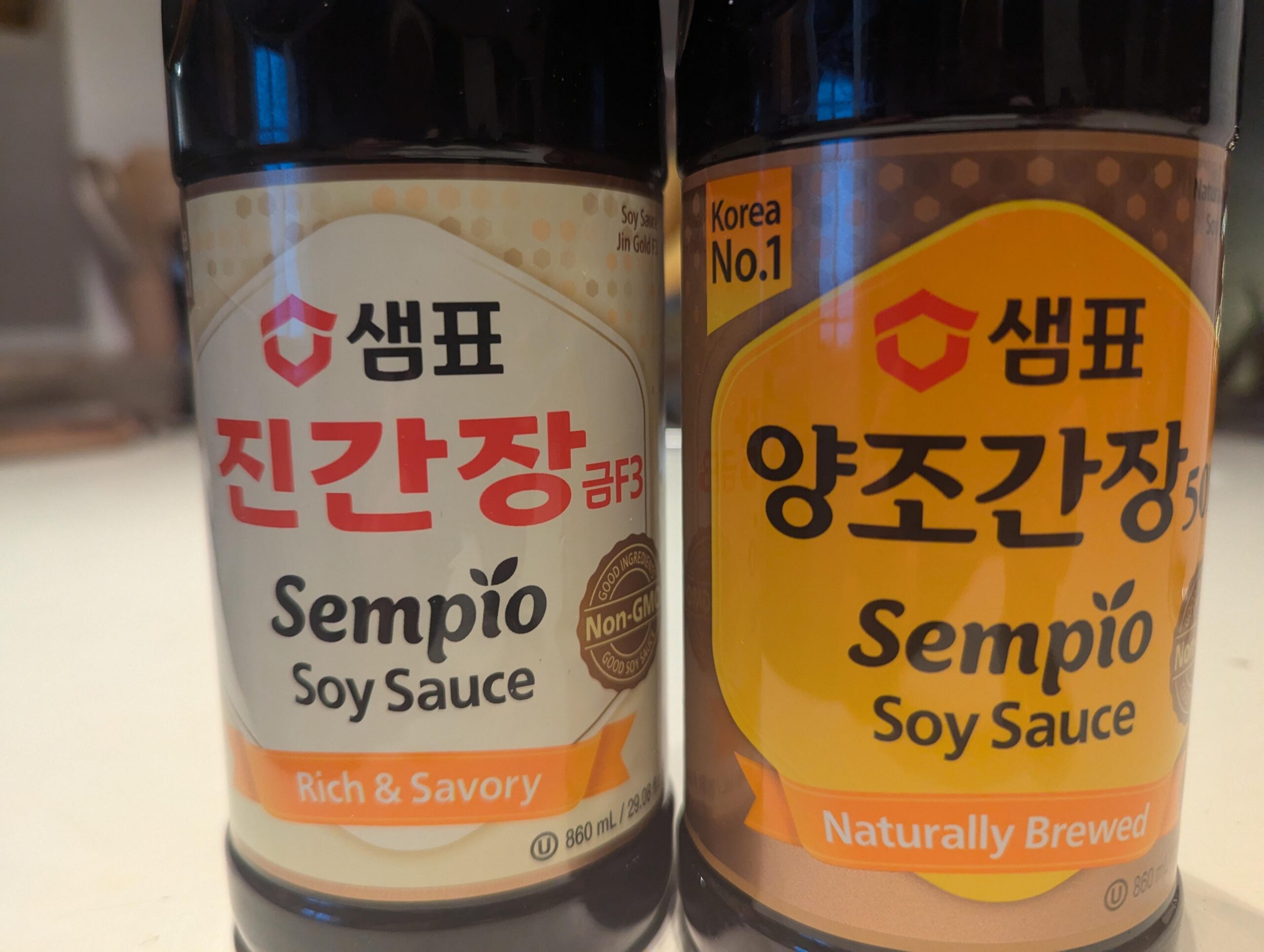 The one on the left is very very popular because it’s good and affordable considering how much soy sauce is used in Korean cooking. It’s often specified in recipes because of the 4 types of Korean soy sauce, 진 is such a staple type found in nearly every home. The one on the right is the better soy sauce quality from the slow, natural fermentation process to make it. It yields higher fermentation index, “TN” total nitrogen, of 1.5. If you get the 양조 701, the index bumps up to 1.7. But it’s more expensive, which is why it’s not the staple type.